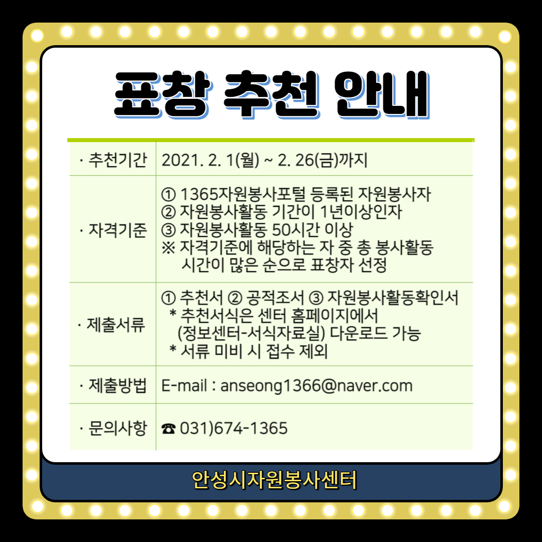 2021년 안성시 자원봉사 유공자 표창 추천 안내