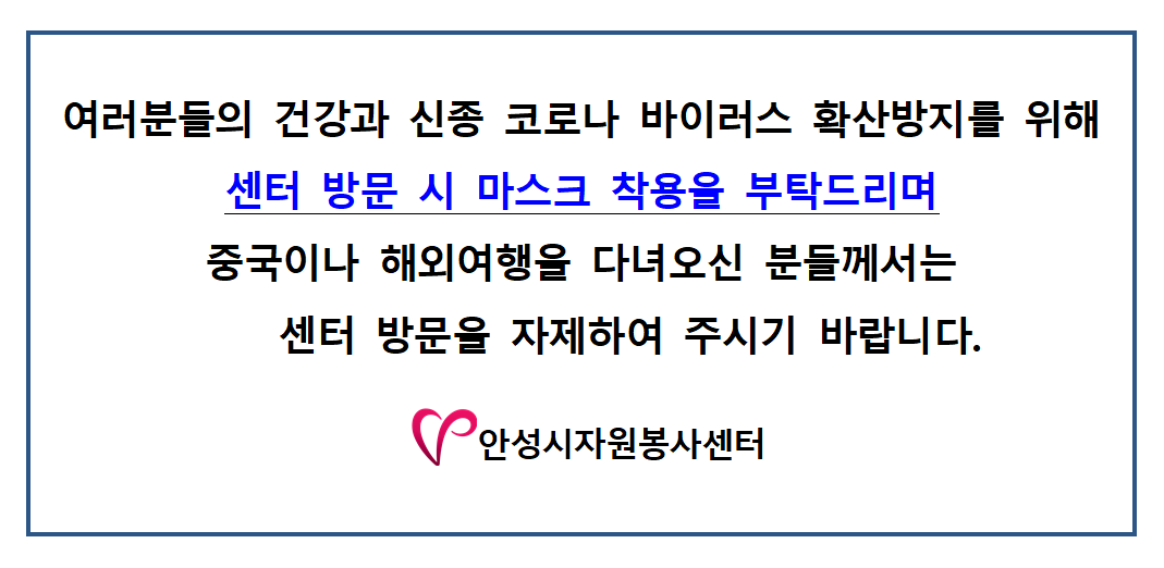 신종 코로나 바이러스 확산방지를 위한 센터방문시 주의사항 안내