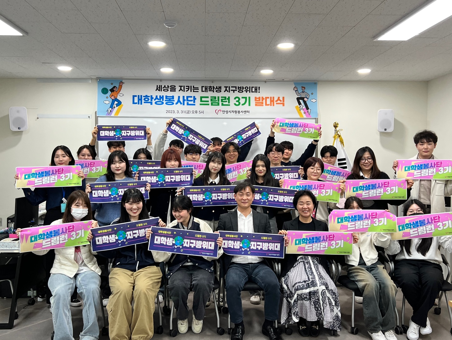 안성시자원봉사센터는 지난 2023년 3월 31일 대학생봉사단 드림런 3기 발대식을 개최했다. 이번 3기 대학생봉사단은 한경대, 중앙대, 동아방송예술대 등 관내 5개 대학과 인근 대학 재학 중인 학생 70명이 참여했다.