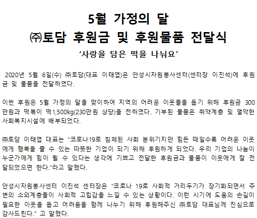 [2020.5.6] (주)토담 후원금 및 후원물품 전달식