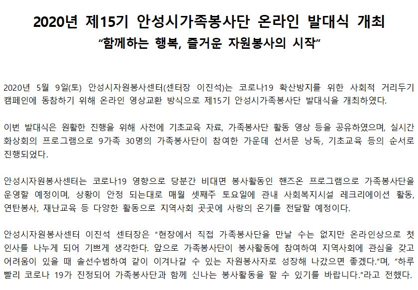 [2020.5.9] 제15기 안성시가족봉사단 온라인 발대식