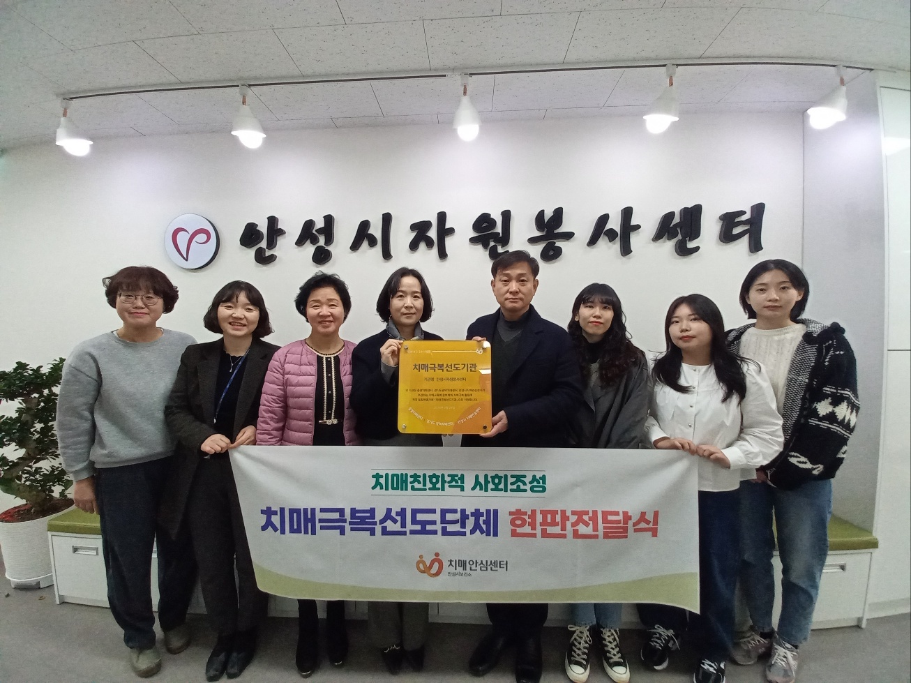 안성시보건소 치매안심센터는 지난 4일 안성시자원봉사센터를 제29호 치매극복선도단체로 지정하고 현판 전달식을 가졌다.