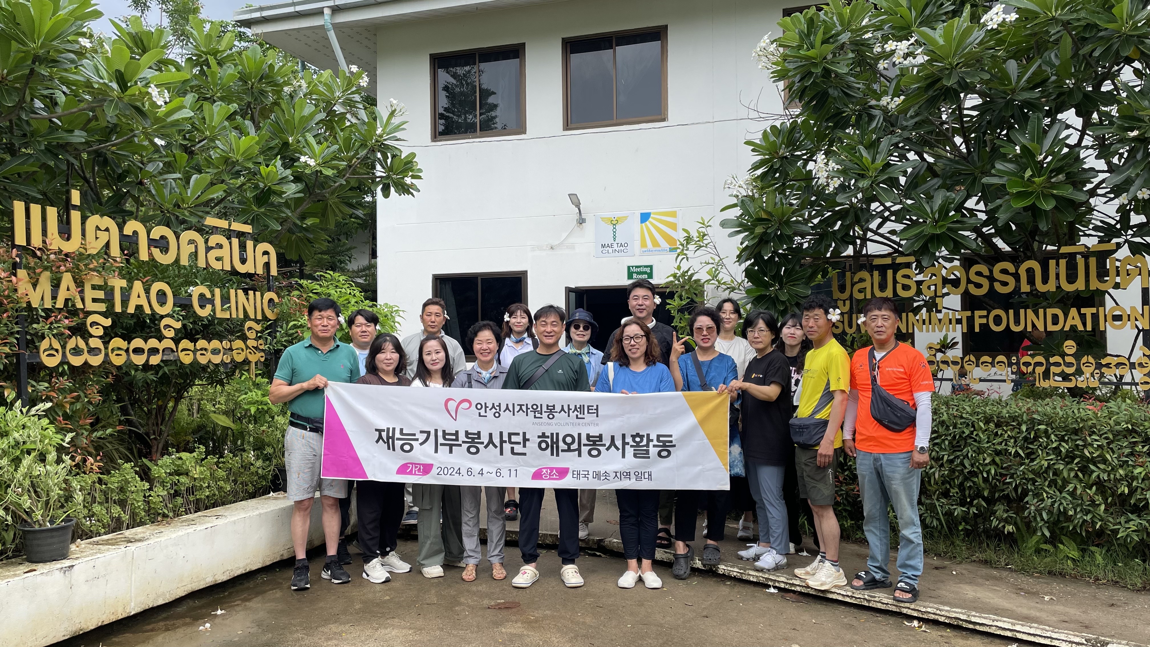 안성시자원봉사센터가 6월 4일부터 11일까지 6박 8일간의 일정으로 ‘2024 재능기부 해외봉사단’을 파견해 태국‧미얀마 국경지대 메솟에 거주하는 난민을 대상으로 이‧미용, 집수리, 벽화 그리기, 문화 전달, 교육 프로그램 등의 다양한 재능기부 봉사활동을 펼치고 돌아왔다.