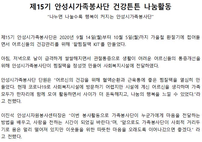 [2020.9.14~10.5] 제15기 안성시가족봉사단 건강튼튼 나눔활동