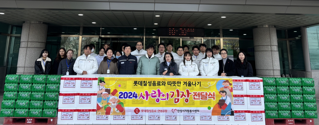 지난 3일, 안성시기업사회공헌단 롯데칠성음료(주) 안성공장이 취약계층을 위한 김장 김치 10kg 70박스와 자사 음료 151박스를 안성시자원봉사센터에 전달하였다.