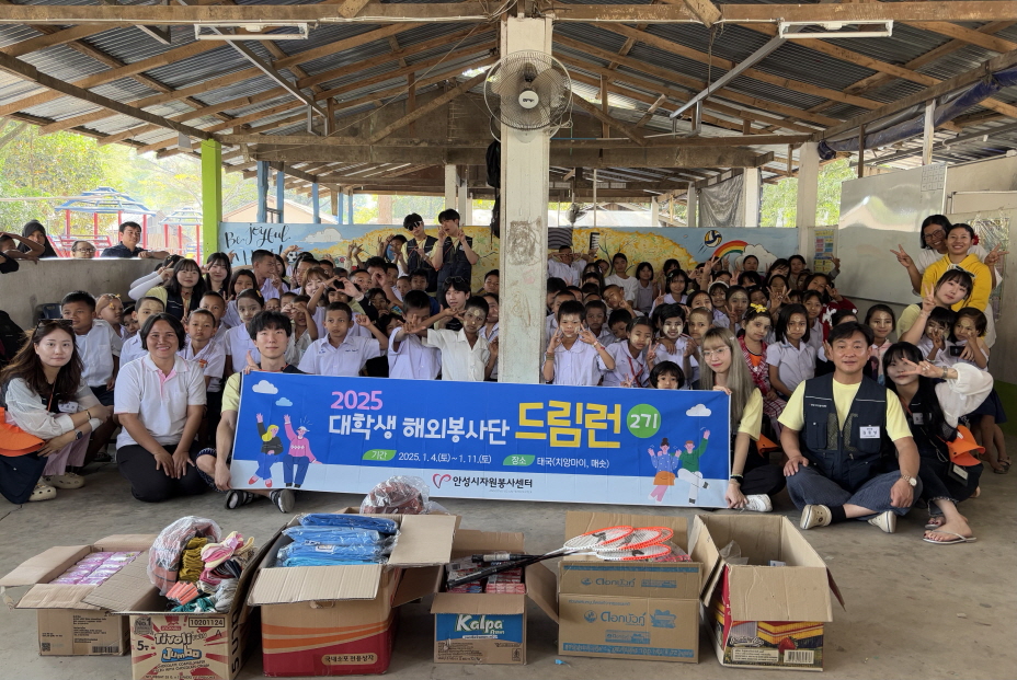 지난 1월 4일부터 11일까지(6박 8일간), 안성시자원봉사센터는 태국 메솟 지역에서 해외 봉사활동을 성공적으로 마무리했다고 밝혔다. 이번 드림런 대학생 해외봉사단 2기는 총 16명의 대학생이 참여해 다양한 활동을 통해 태국 국경 지역의 미얀마 전쟁 난민들과 한국 문화를 공유하는 시간을 가졌다.