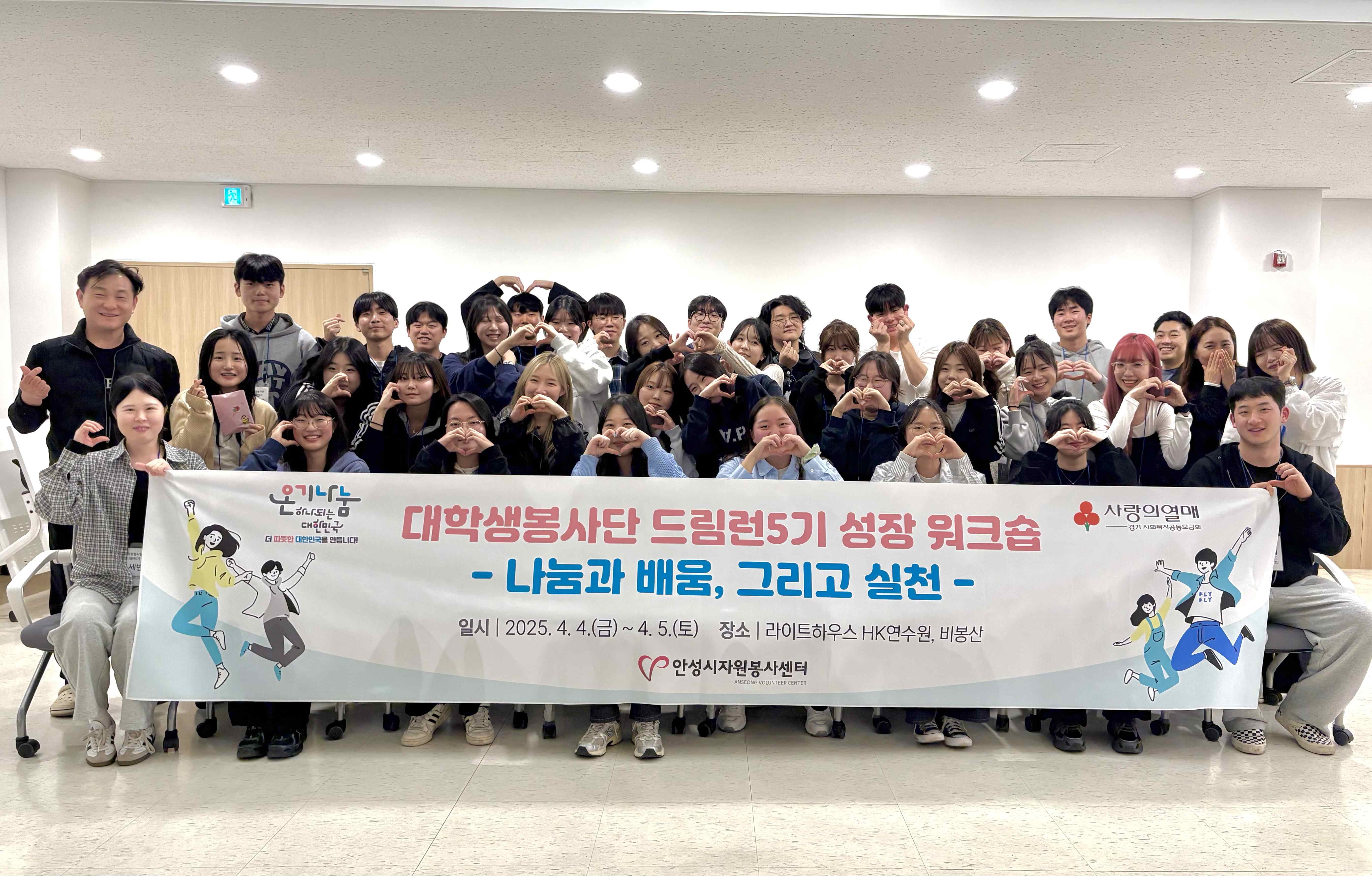 안성시자원봉사센터(센터장 김동성)는 4월 4일과 5일, 대학생봉사단 드림런5기를 대상으로 ‘나눔과 배움, 그리고 실천’이라는 주제로 사랑의열매가 지원하는 성장워크숍을 성공적으로 마쳤다.