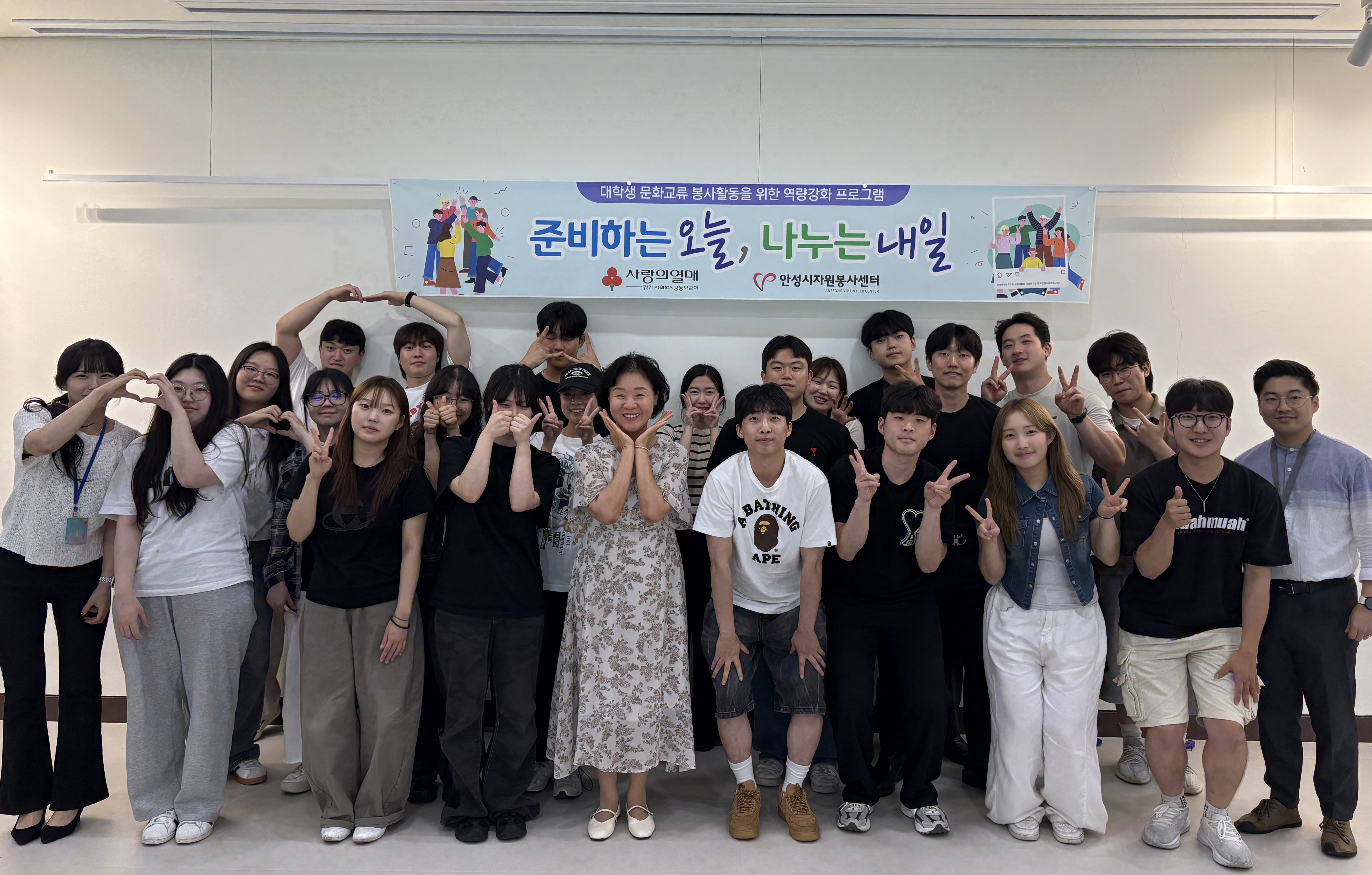 안성시자원봉사센터(센터장 김동성)는 오는 7월 5일(토) 안성시청소년수련관에서 “대학생 문화 교류 봉사활동을 위한 역량강화 프로그램–"준비하는 오늘, 나누는 내일" OT & 워크숍’을 개최했다.