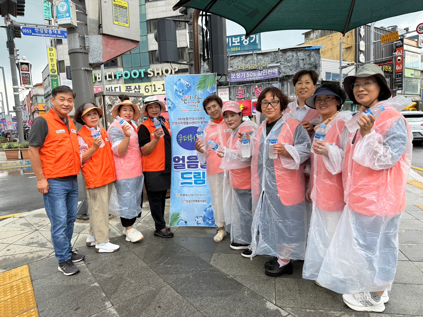 행사의 첫날인 7월 14일(월), 안성시 관내 주요 교차로 2곳(서인사거리, 공도시외버스정류장)에서 얼음물 나눔 활동이 성황리에 진행되었다. 소나기 직후의 무더위 속에서도 자원봉사자들은 밝은 표정으로 시민들에게 얼음물을 건네며 따뜻한 응원과 시원한 쉼표를 동시에 전달했다.