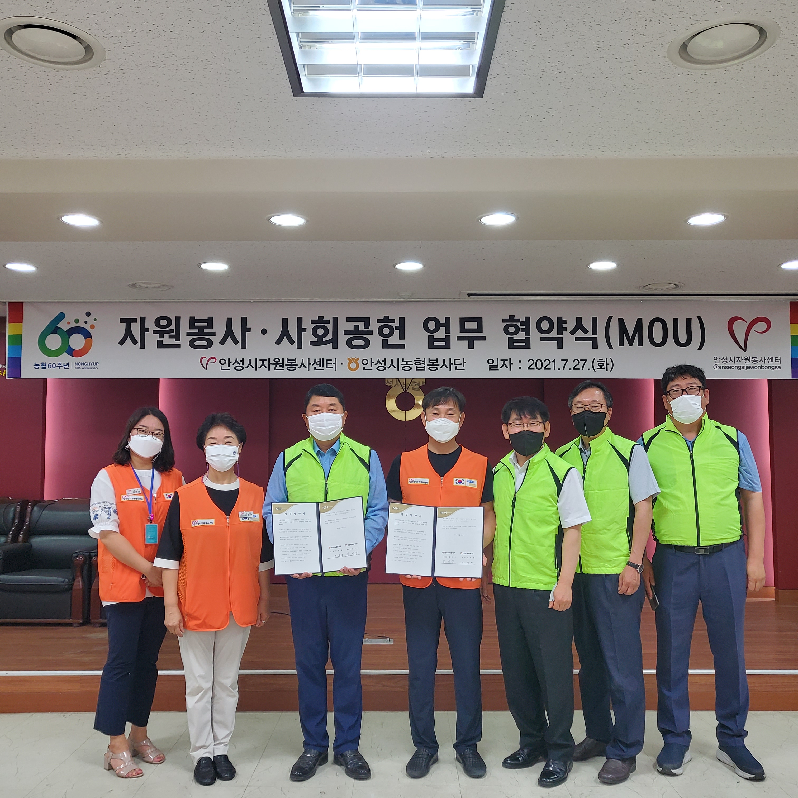 안성시자원봉사센터는 27일 안성시농협봉사단(김관섭단장, 손남태부단장)과 안성시 자원봉사활성화 및 사회공헌실현을 위한 업무협약을 체결했다.
