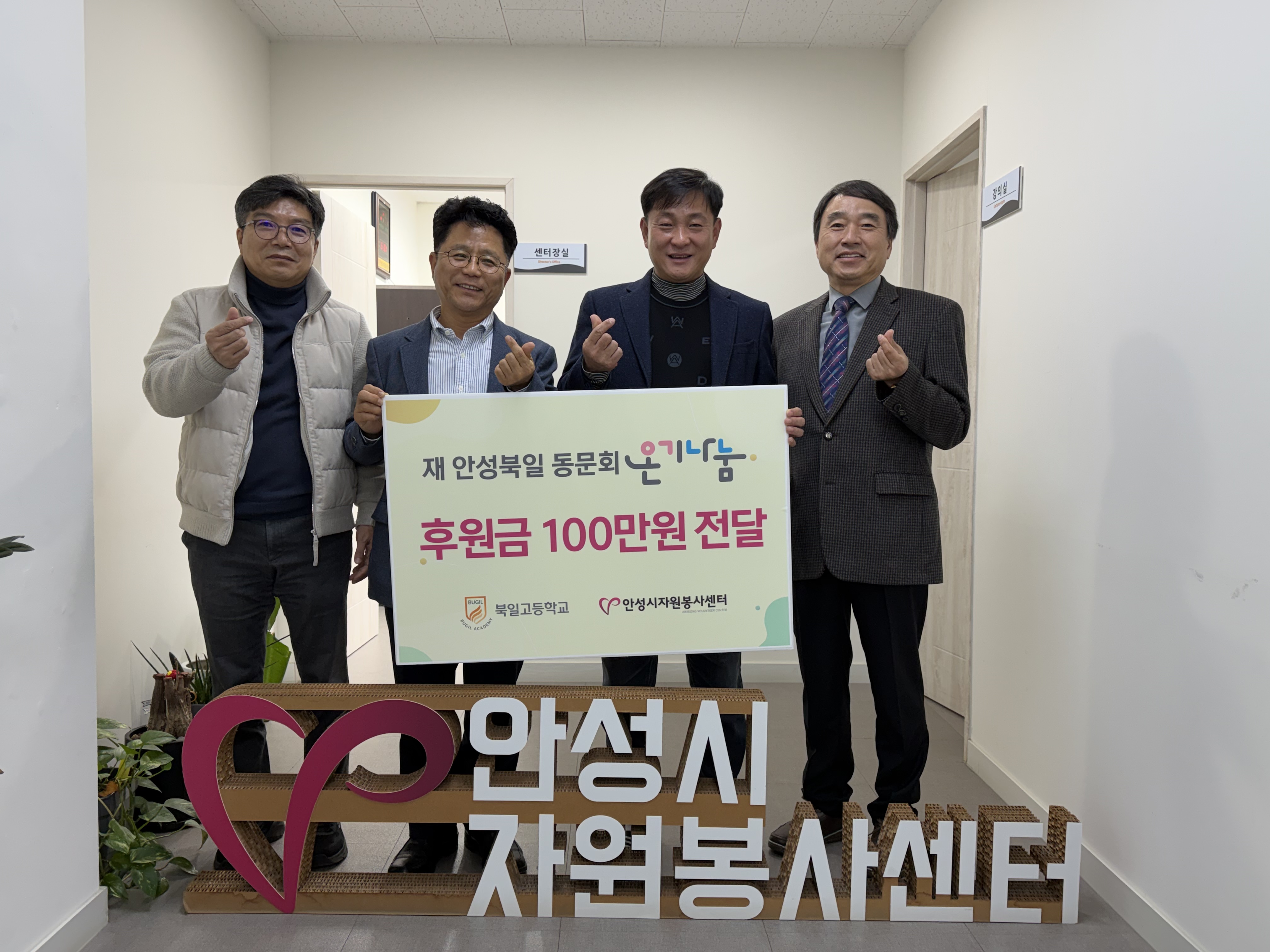 지난 8일, 안성시자원봉사센터(센터장 김동성)는 연말을 맞아 재 안성북일 동문회로부터 온기나눔 후원금 100만 원을 전달받았다.