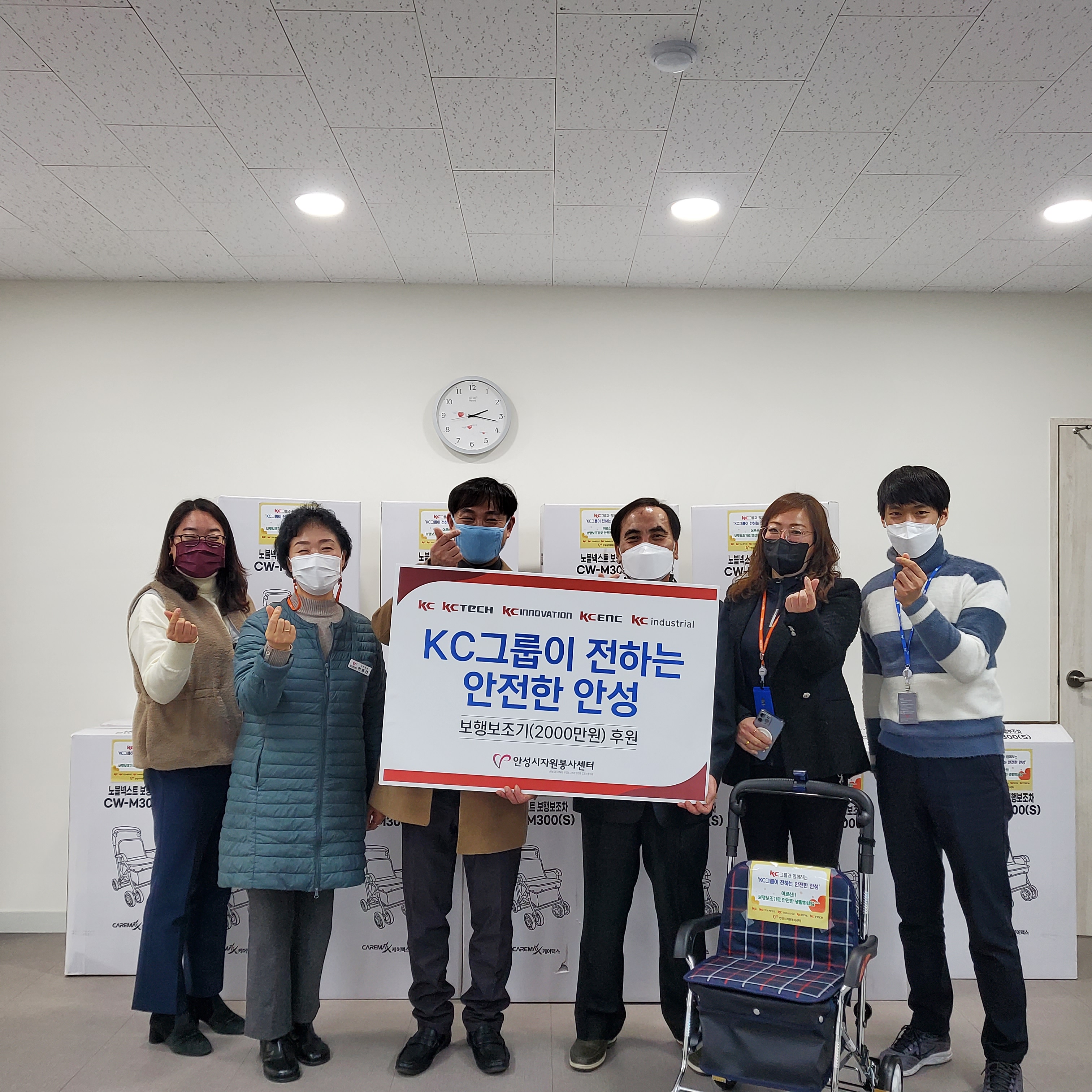 안성시 기업사회공헌단으로 활동하고 있는 KC그룹은 안성시 어르신의 낙상을 방지하고, 안전하게 일상생활을 할 수 있도록 보행보조기223대(2000만원)를 지난 7일 안성시자원봉사센터에 기탁했다.