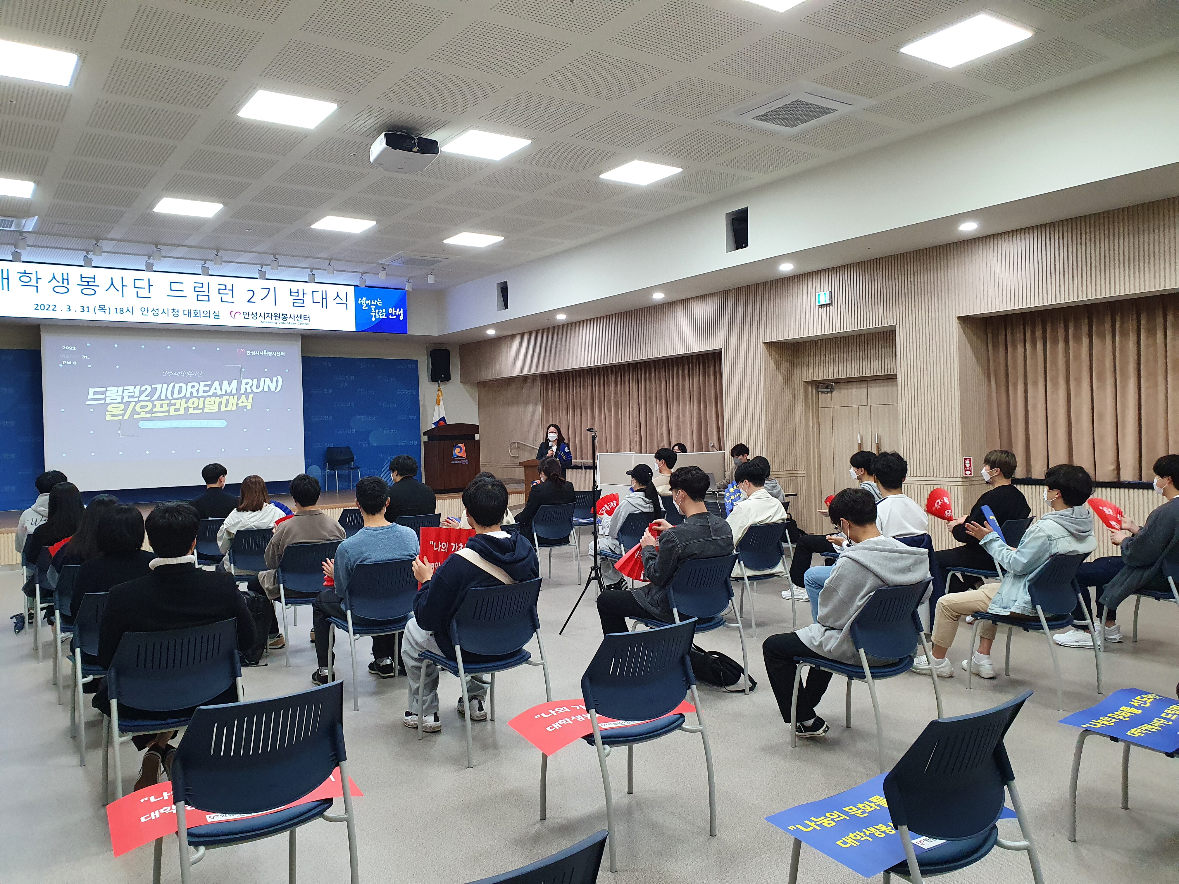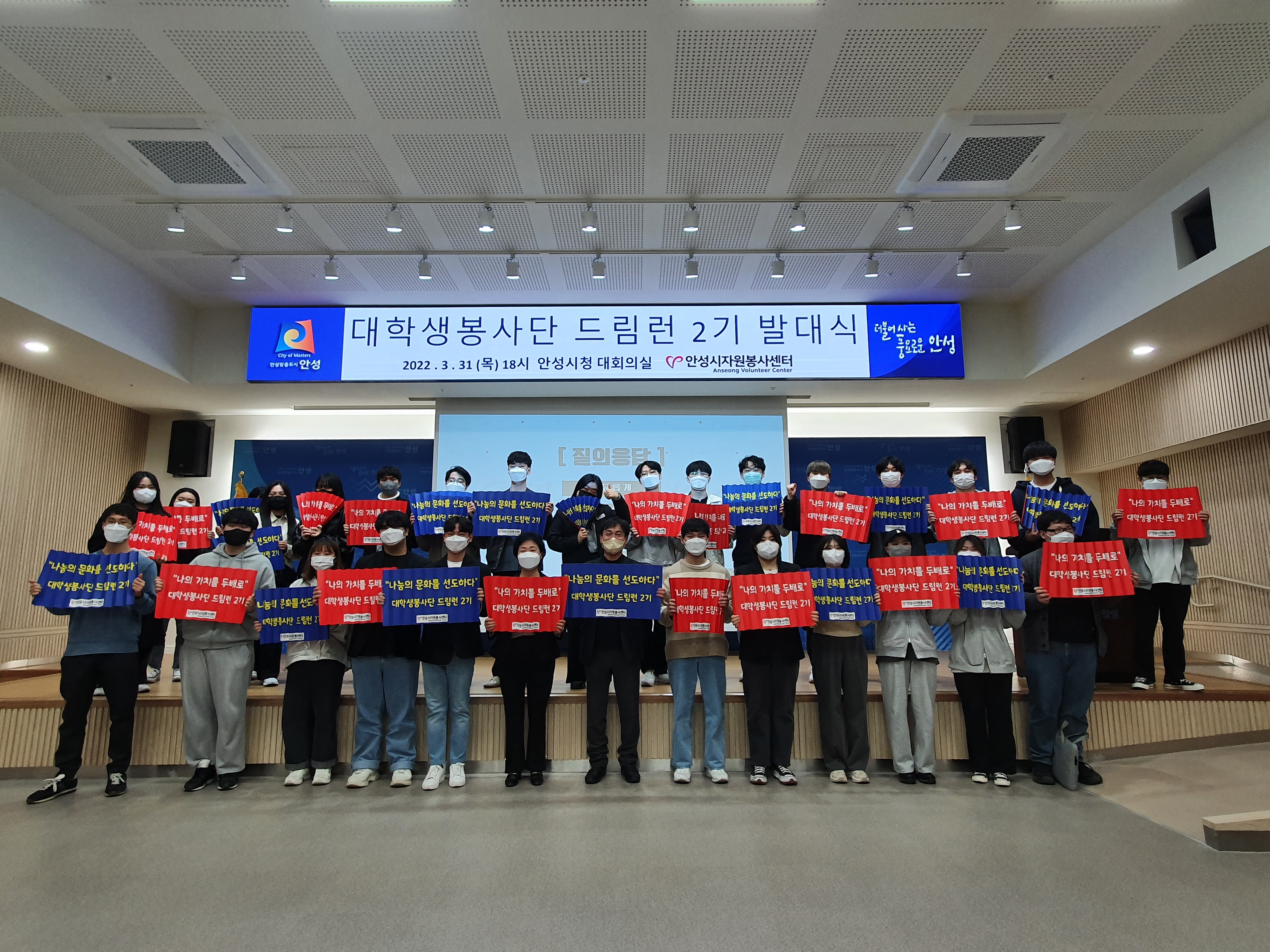 안성시자원봉사센터는 2022년 3월 31일 안성시청 4층 대회의실에서 대학생봉사단 드림런 2기 발대식을 개최했다.