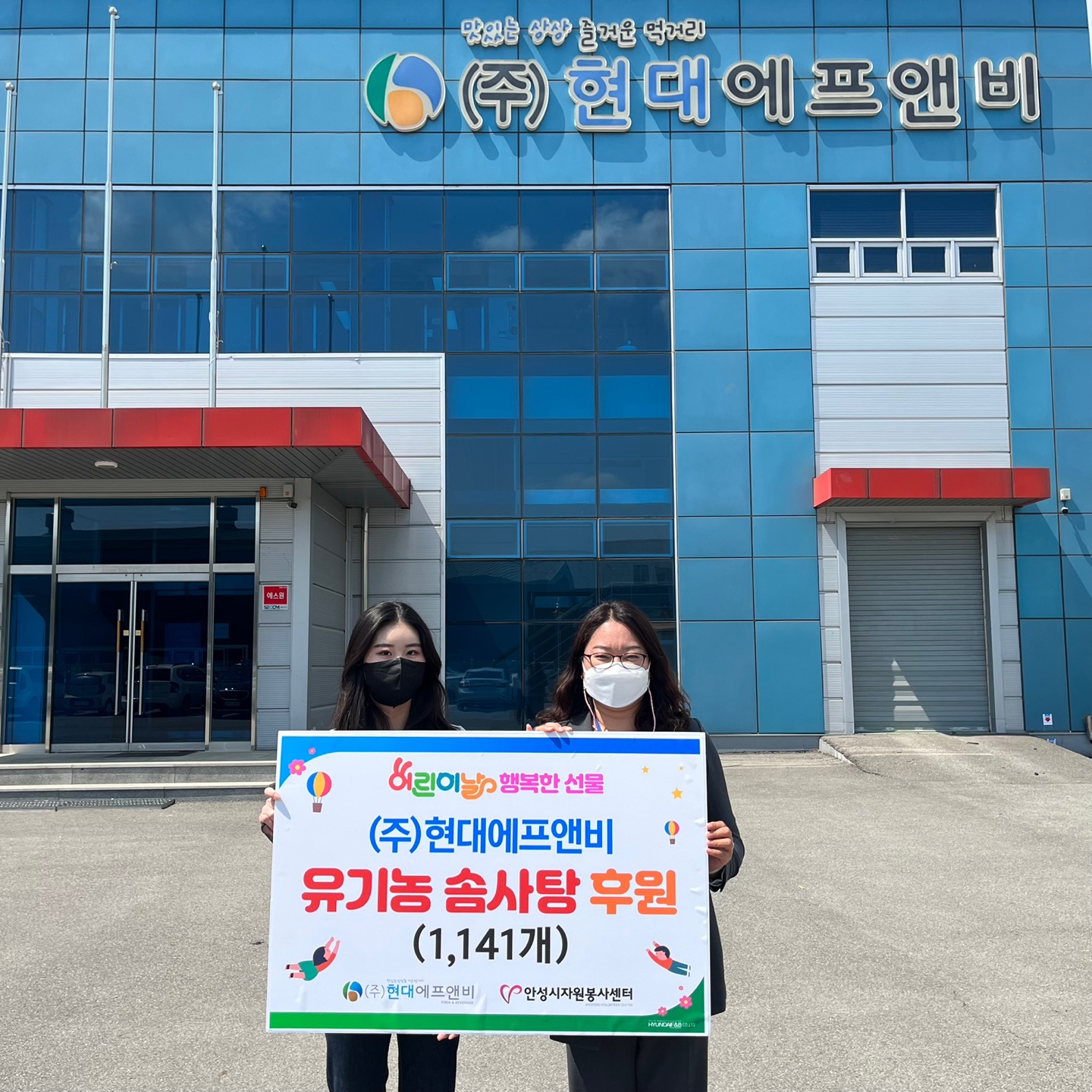 ㈜현대에프앤비는 유기농 설탕, 천연색소 등을 사용하여 어린이를 위한 안전하고 즐거운 먹거리를 제조하고 국내 판매와 해외 수출을 하는 기업으로 2013년부터 사회적 기업으로 안성시 기업사회공헌단 활동 중이며, 지역사회 발전과 소외된 이웃을 위해 정기적으로 후원을 진행하고 있다.