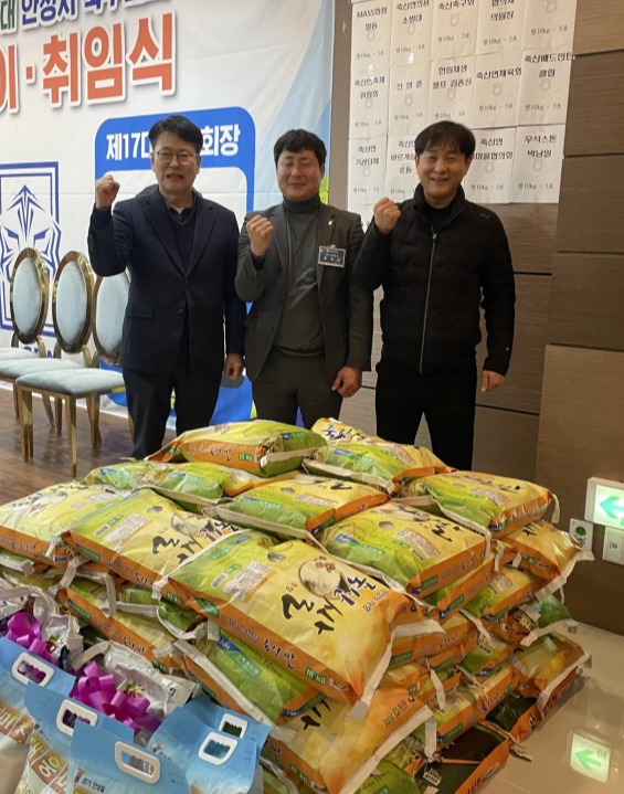 안성시 축구협회 17대 취임 회장 문두식 죽산면 면사무소에 쌀 650kg 기부