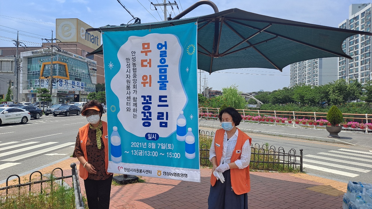 안성시자원봉사센터는 안성농협중앙회와 협력하여 얼음물을 준비하였습니다.