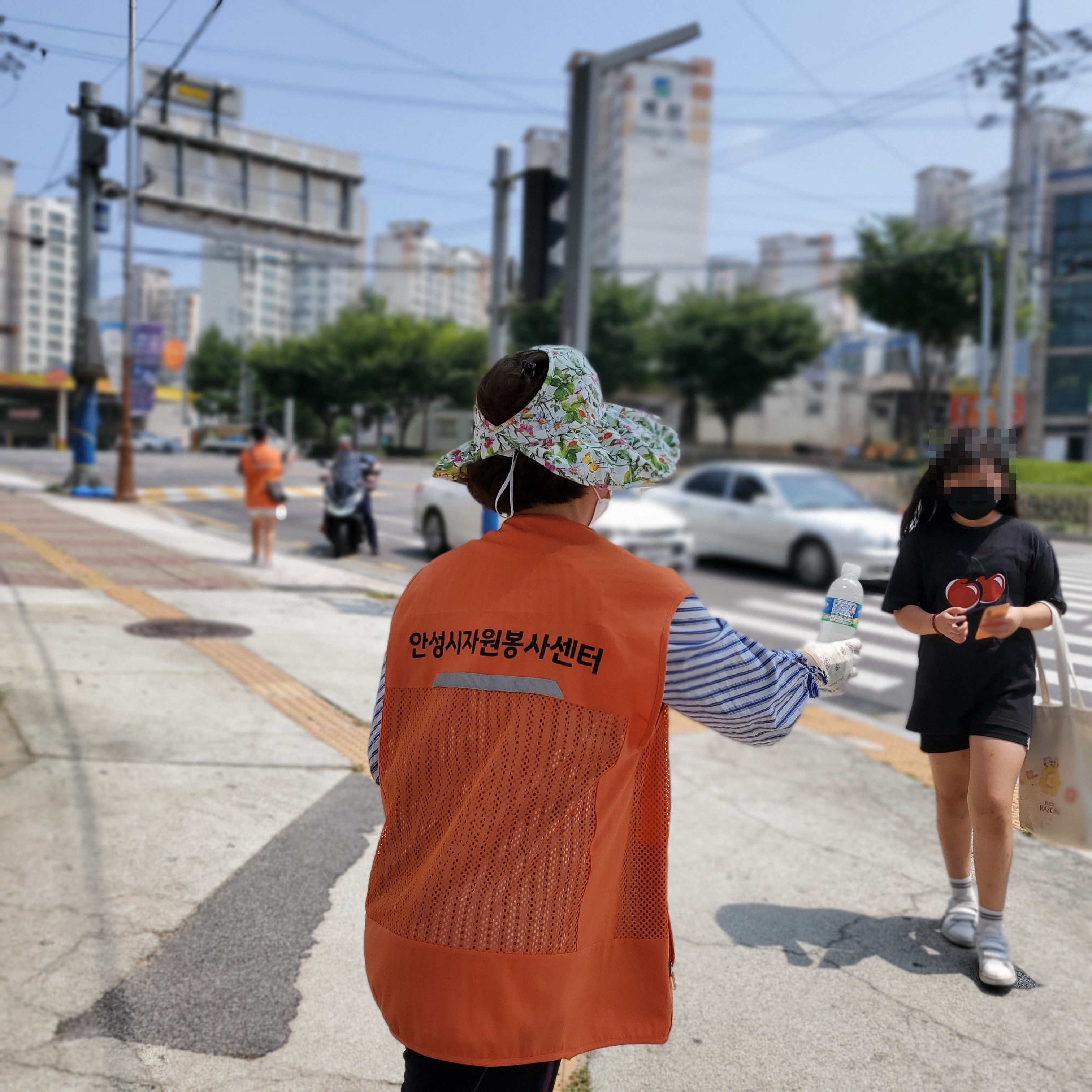 시민들을 위해서 서인사거리, 한경대 사거리, 이마트 앞 사거리, 공도경찰서 앞 사거리, 공도 터미널 앞 총 5곳에서 센터 직원 및 자원봉사자들과 함께 얼음물 나눔을 진행하였습니다.