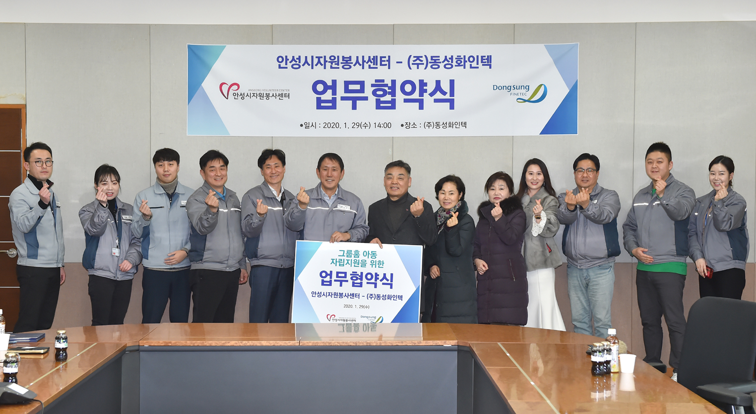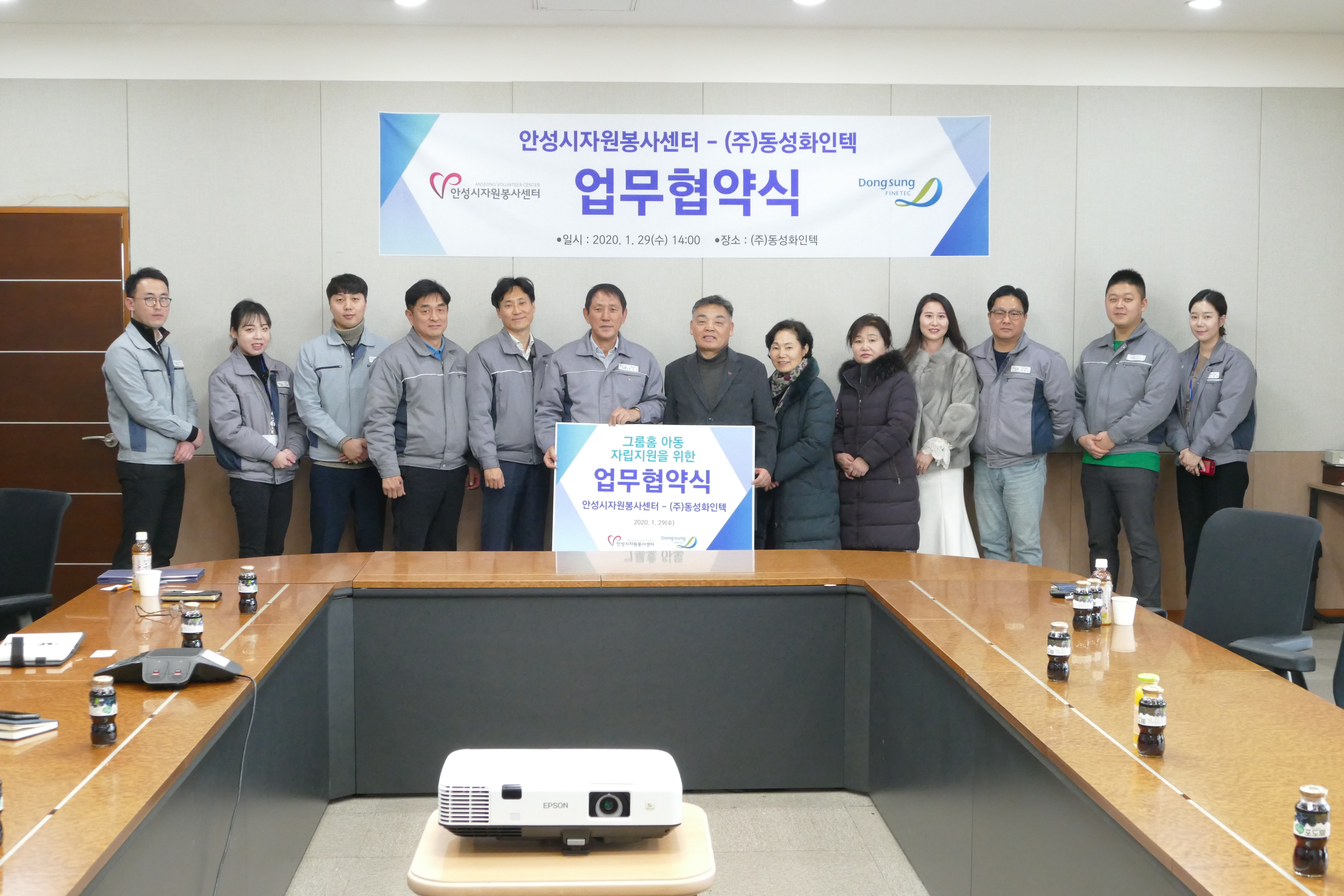 2020년 1월 29일(수) 안성시자원봉사센터(센터장 이진석)와 ㈜동성화인텍(대표이사 류완수)은 그룹홈 아동 자립지원을 위한 업무협약(MOU) 체결을 진행하였습니다.