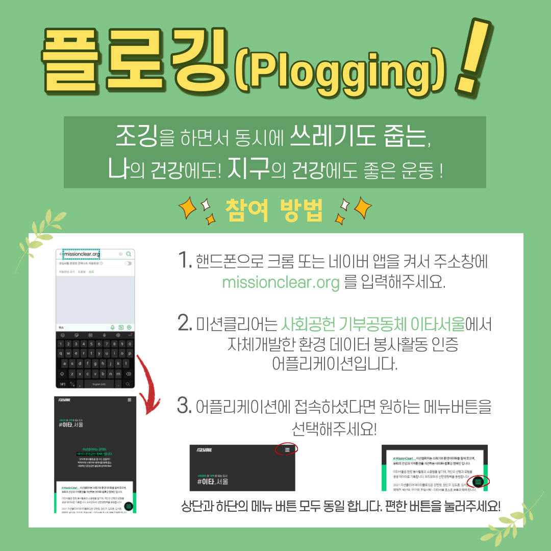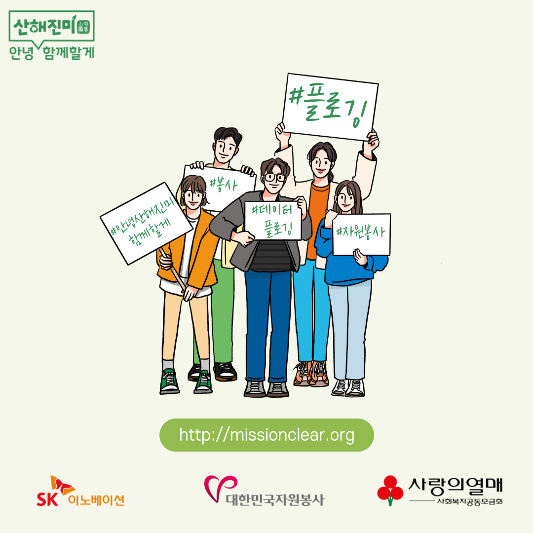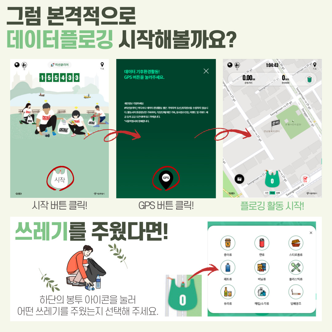 기후위기 대응 플로깅으로 지구를 지키기 위한 중요한 역할이 되어줄 여러분들을 기다립니다.