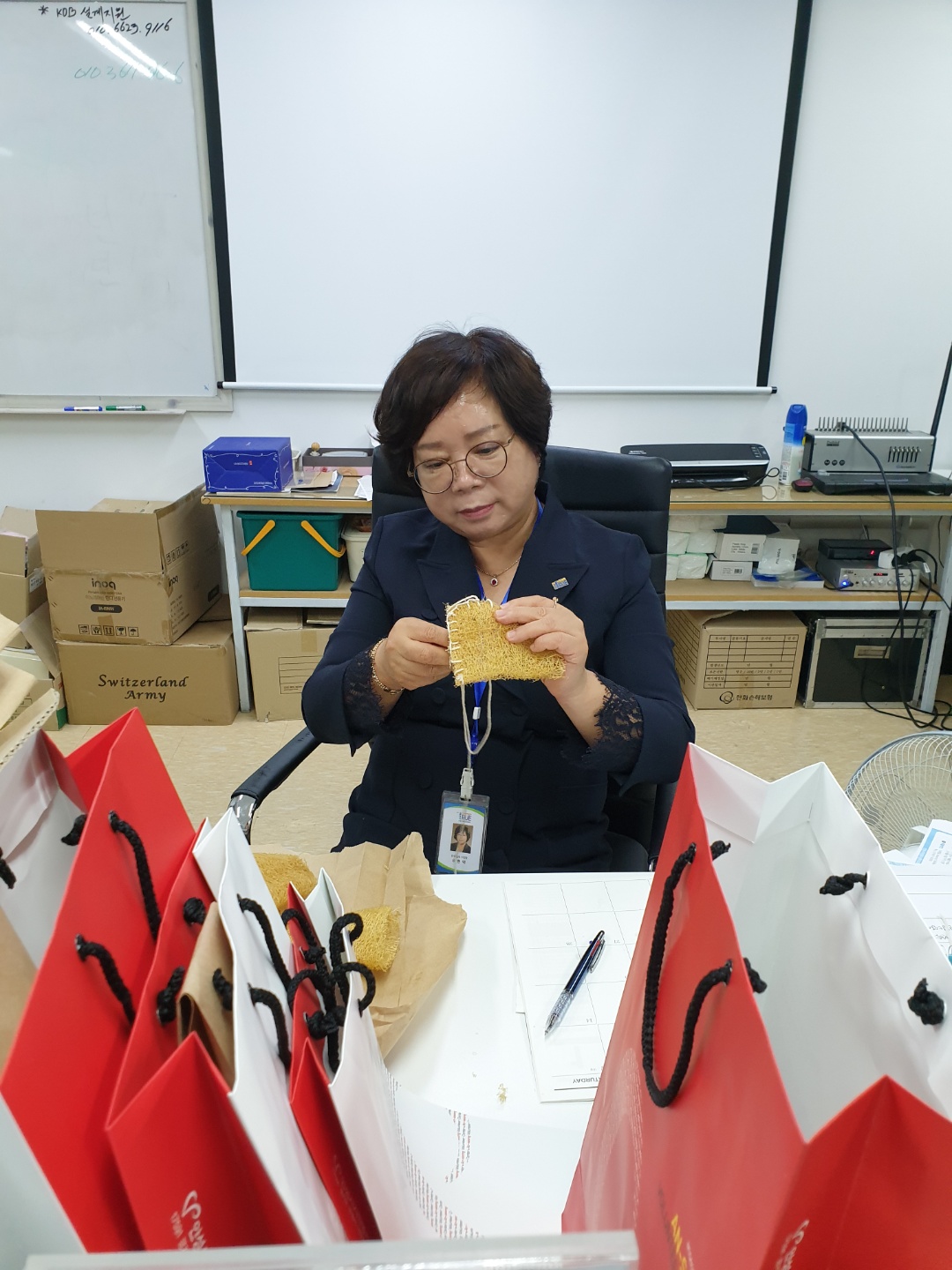 한 땀 한 땀 소중히 만든 친환경수세미 60개는 각 이웃에게 전달하여 이웃과 한 층 가까워지는 시간을 펼쳤습니다.