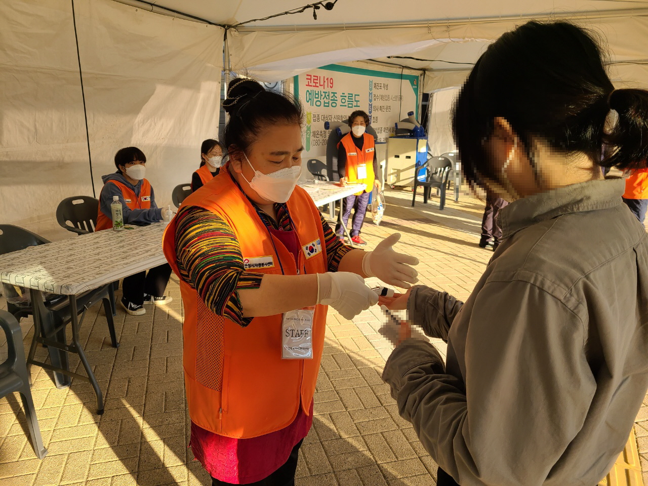 장기화되는 예방접종 일정에도 불구하고 밝은 모습으로 봉사활동을 해주시는 봉사자분들에게 응원과 격려 부탁드려요!!