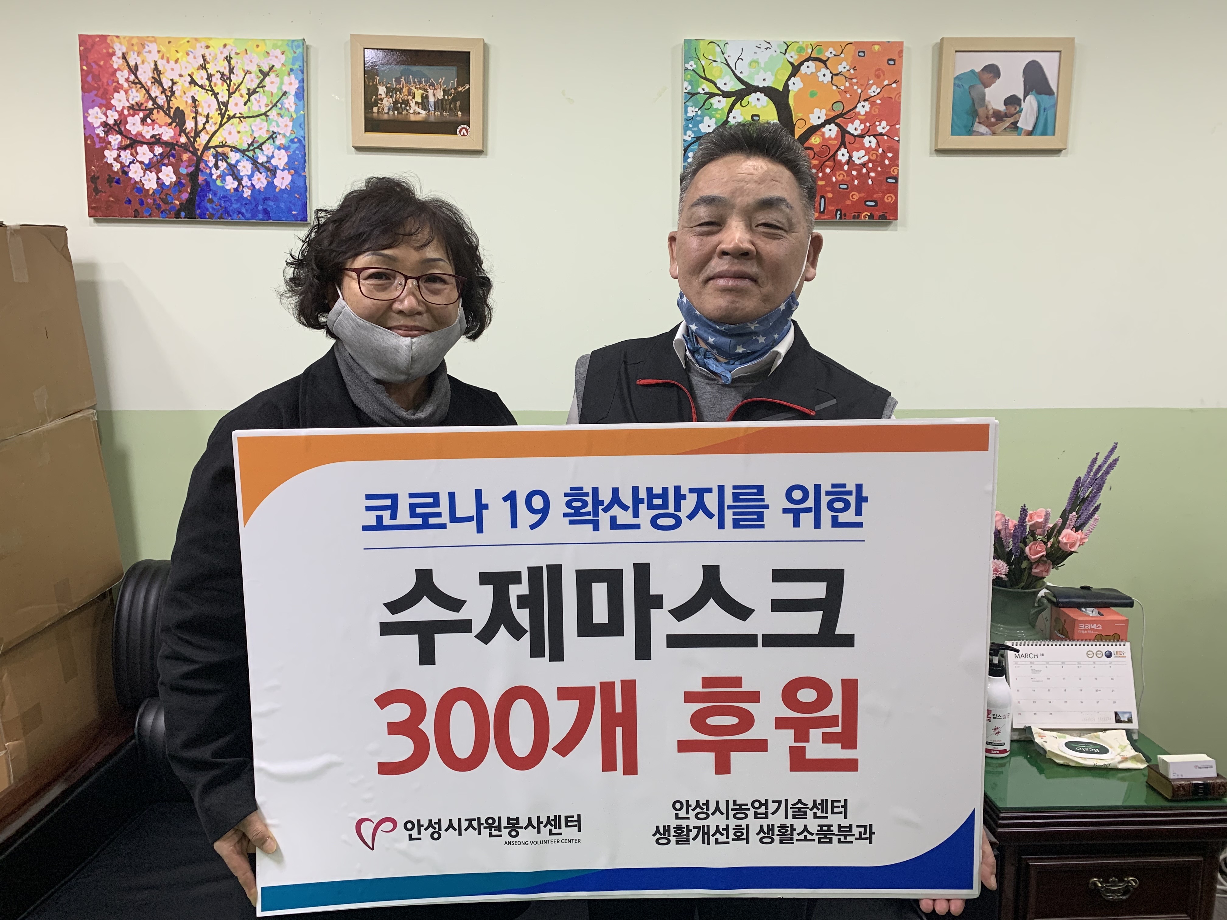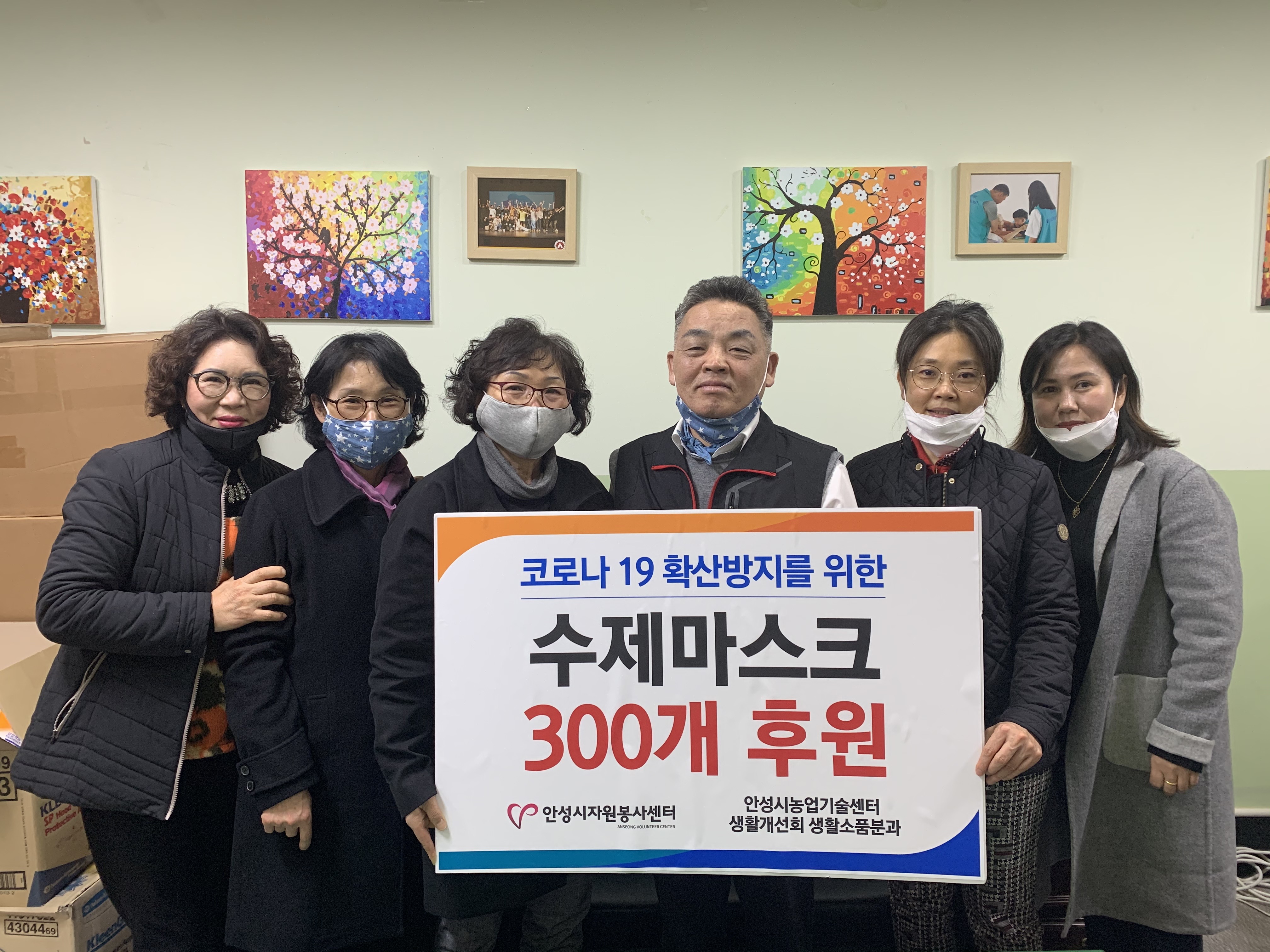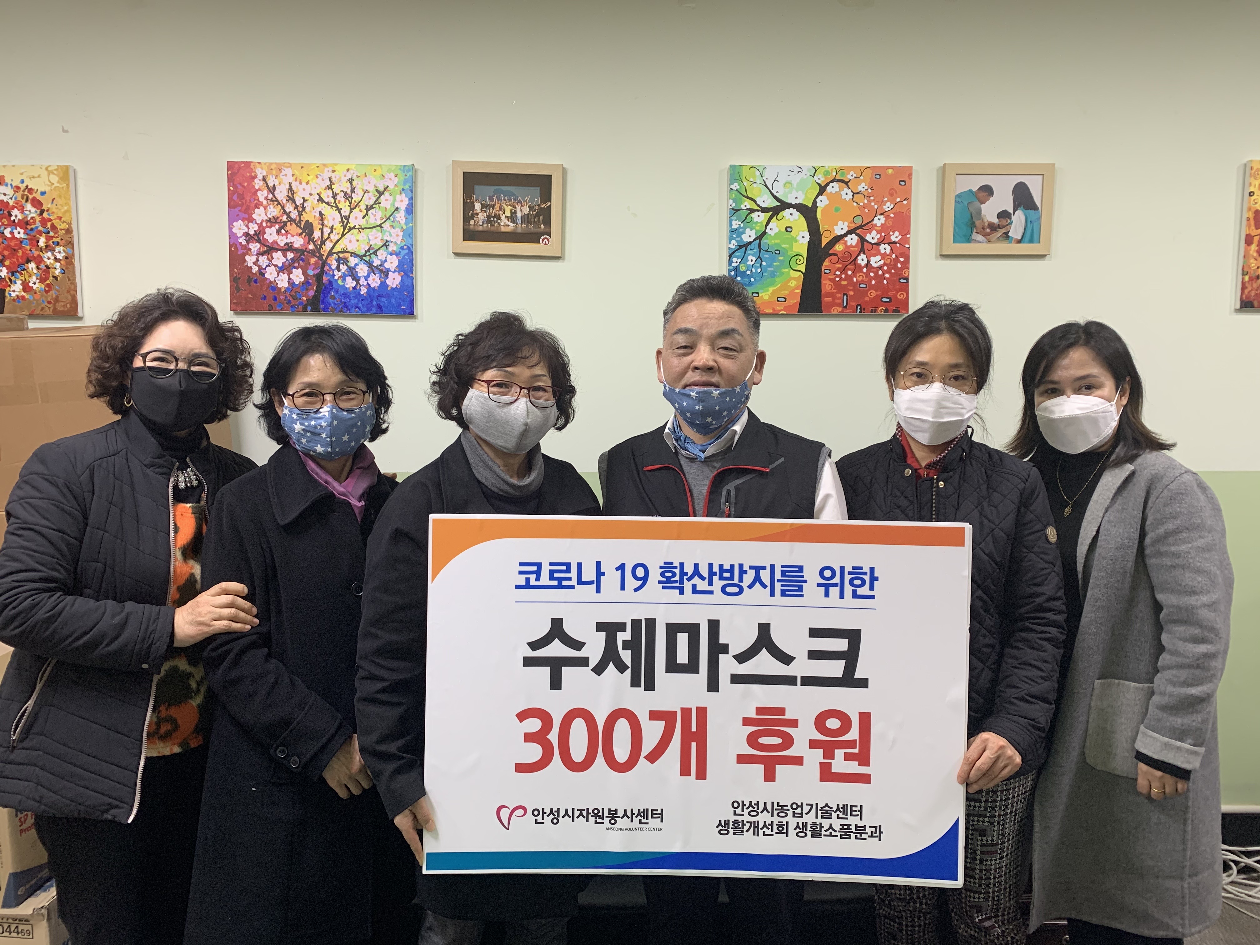 코로나 19 확산방지를 위해 수제 마스크 300개를 안성시자원봉사센터(센터장 이진석)에 전달하였습니다.