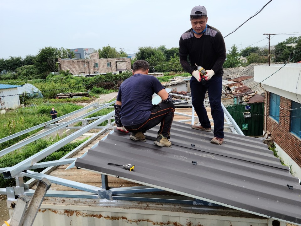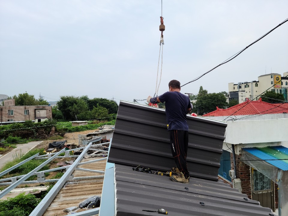 비가 많이 오는 장마시간에 누수를 잡기위해 지붕보수를 진행하였습니다.