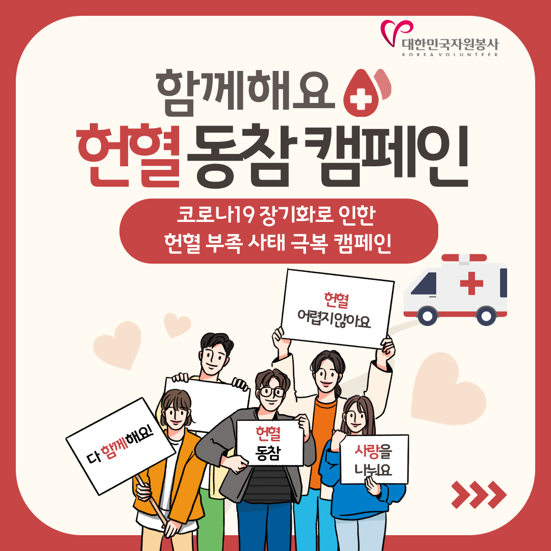 시민 여러분들의 함께하는 헌혈동참이 필요합니다!