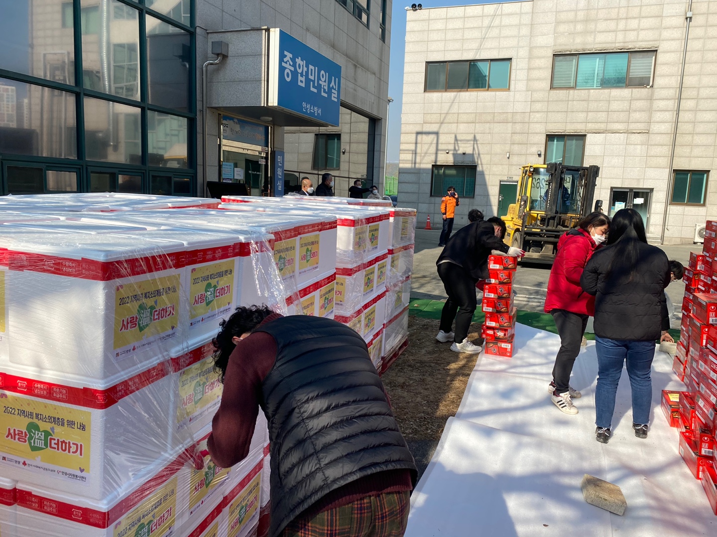 라면, 시리얼, 이불 등으로 구성된 溫 더하기 키트, 사랑 溫 난방유, 김치를 15개 읍면동사무소의 추천를 받아 나눔을 진행하였습니다.