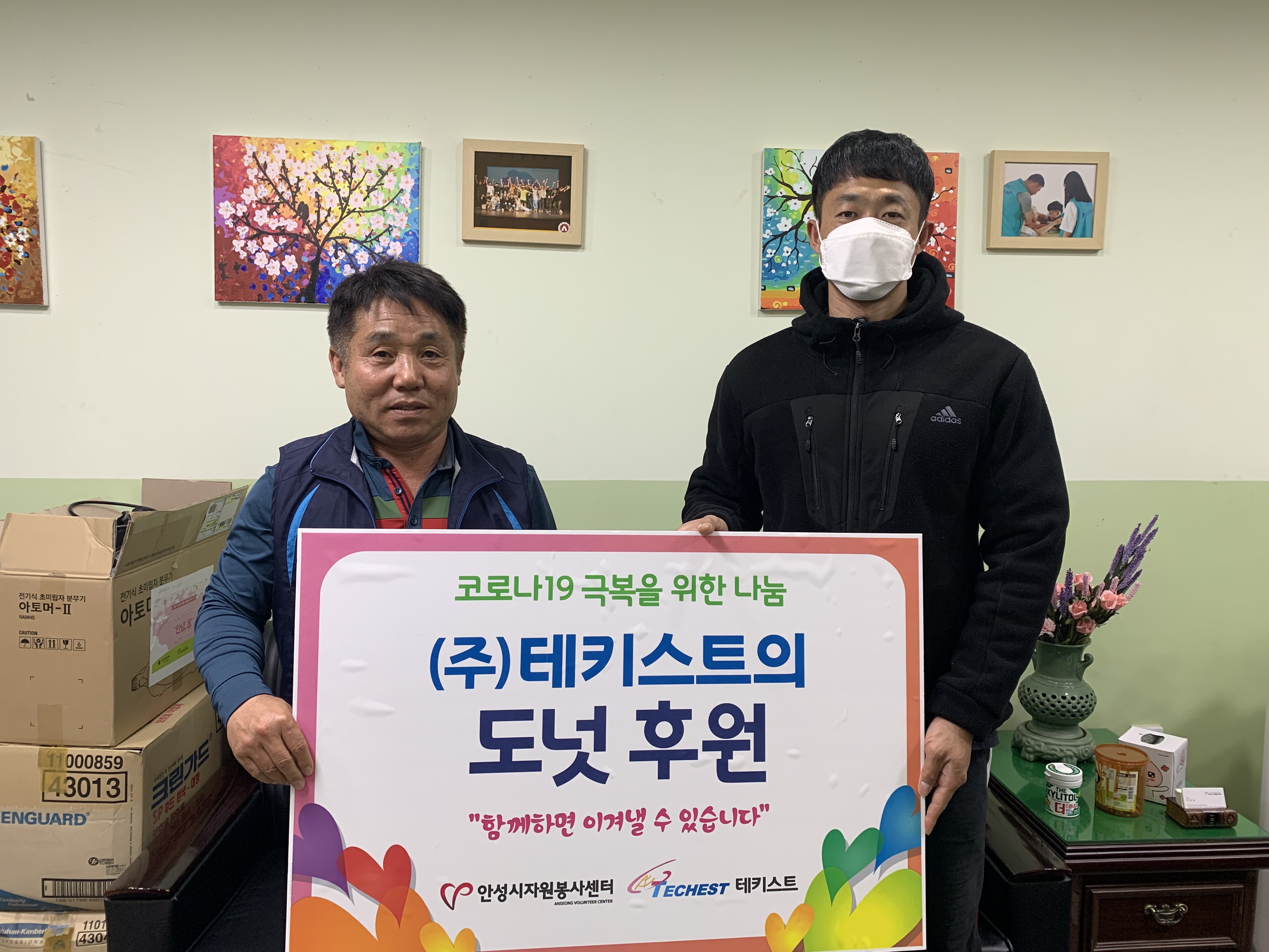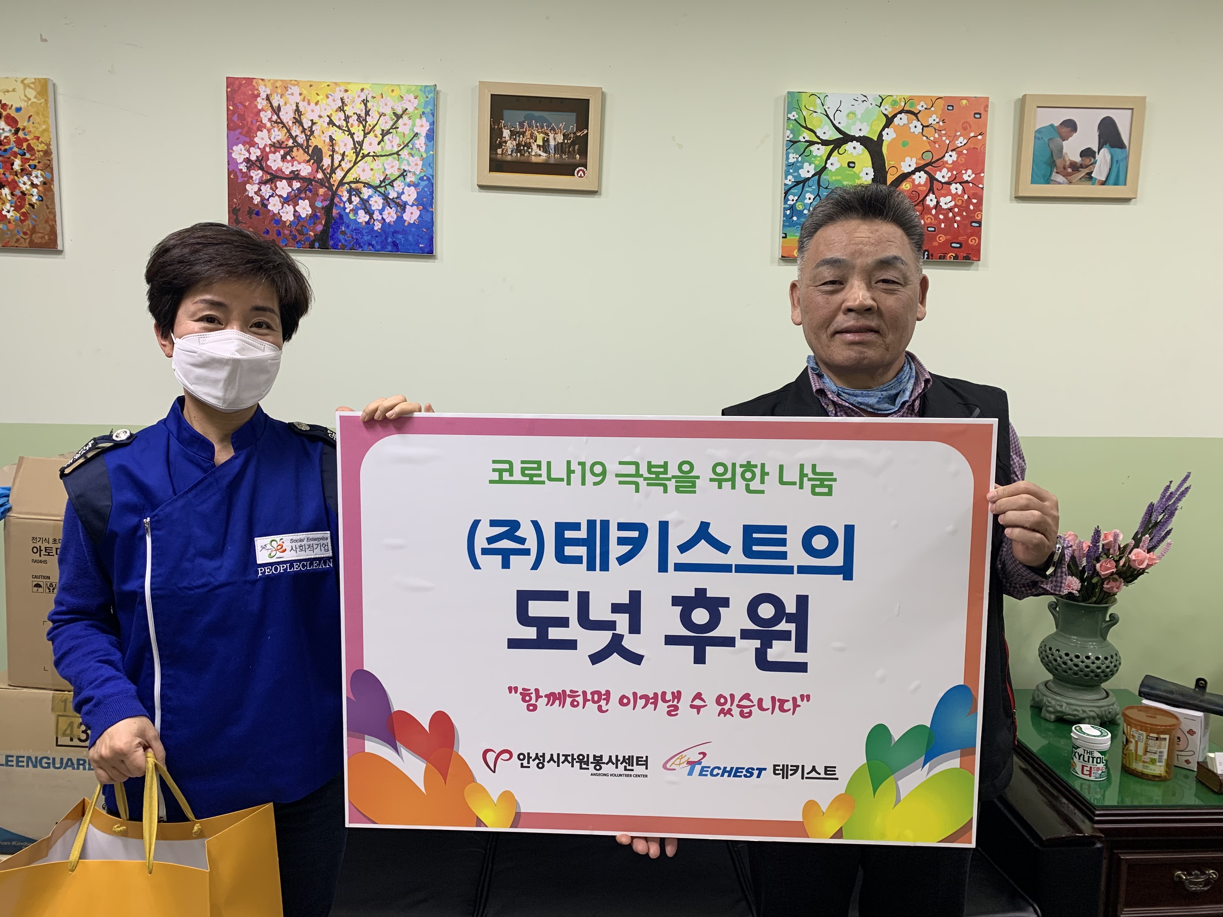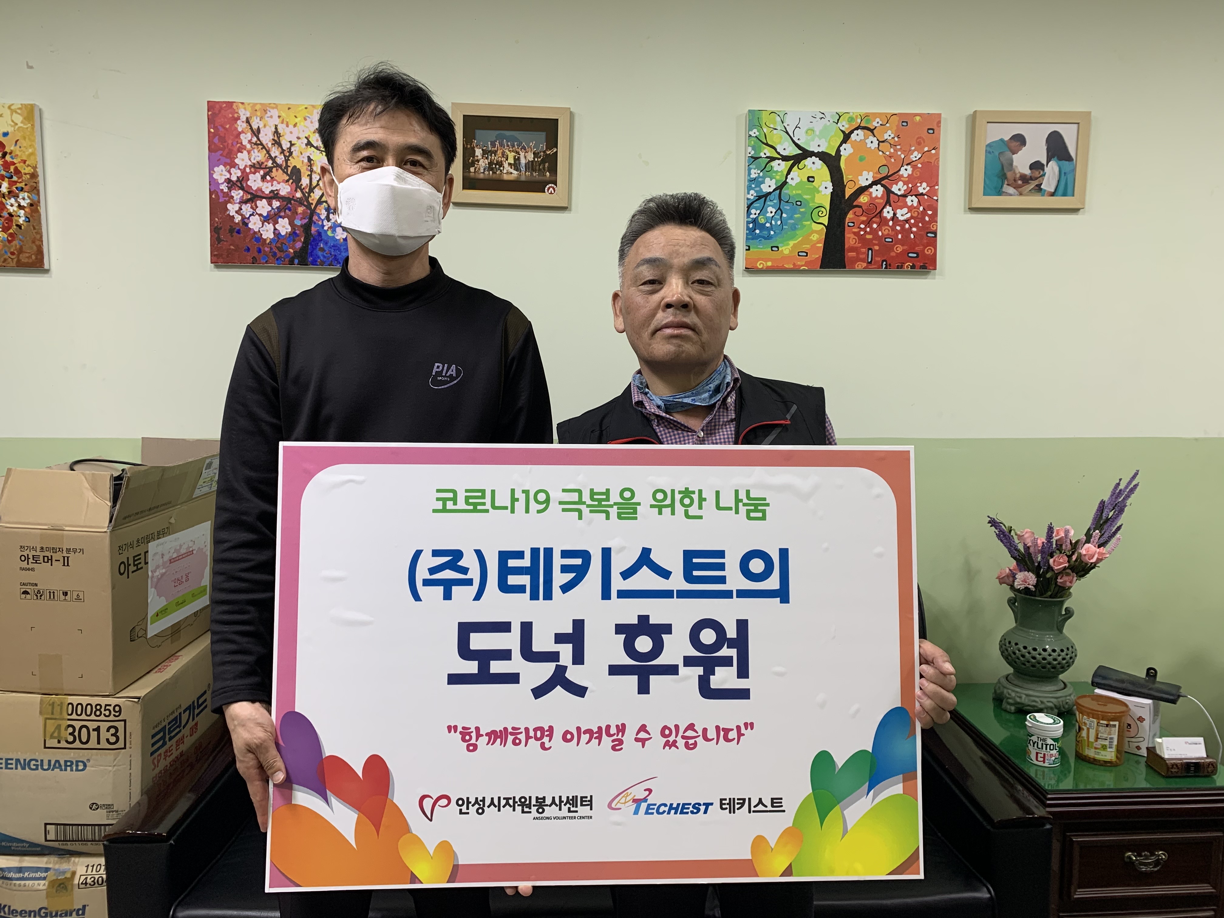 2020년 4월 7일(화) 안성시기업사회공헌단 ㈜테키스트(대표이사 김춘호)는 방역소독 자원봉사자들의 간식을