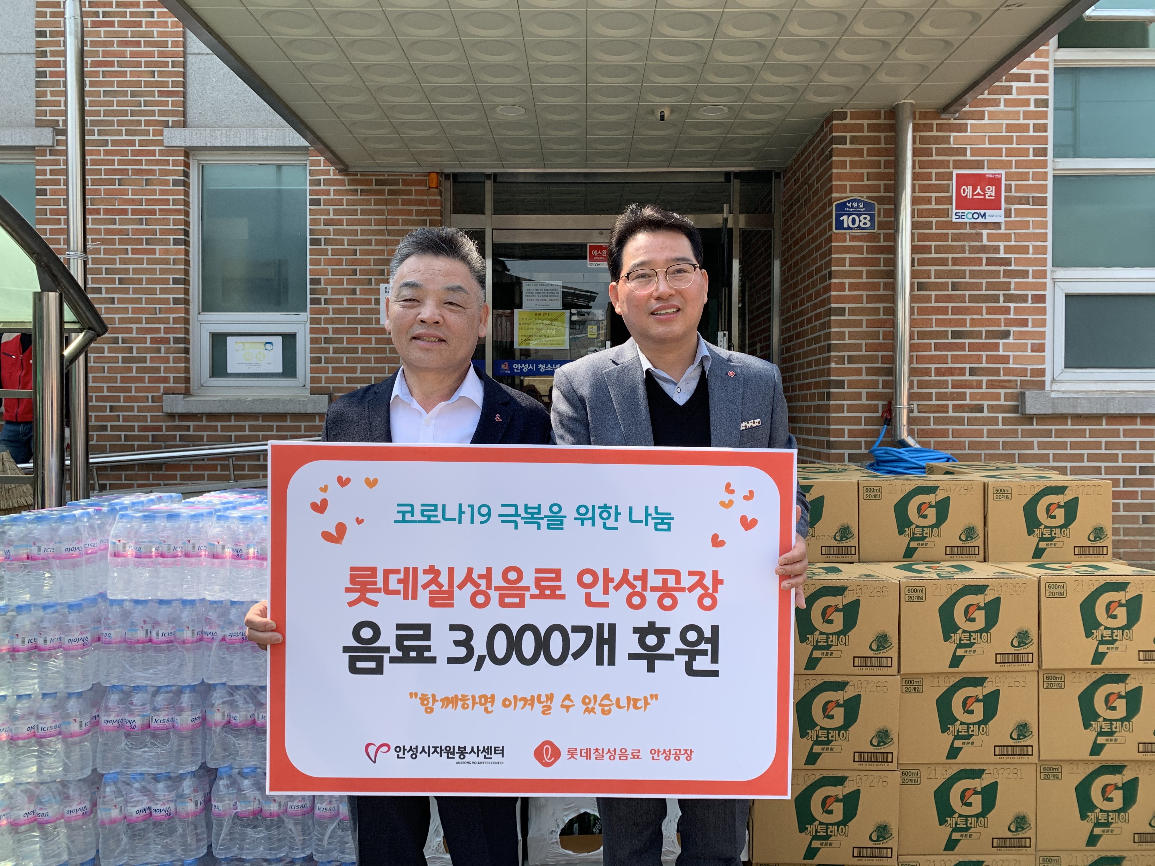 위기상황을 극복하기 위해 자발적으로 방역활동을 펼치는 봉사자들에게 음료를 후원해주신 롯데칠성㈜ 안성공장에 진심으로 감사드립니다.