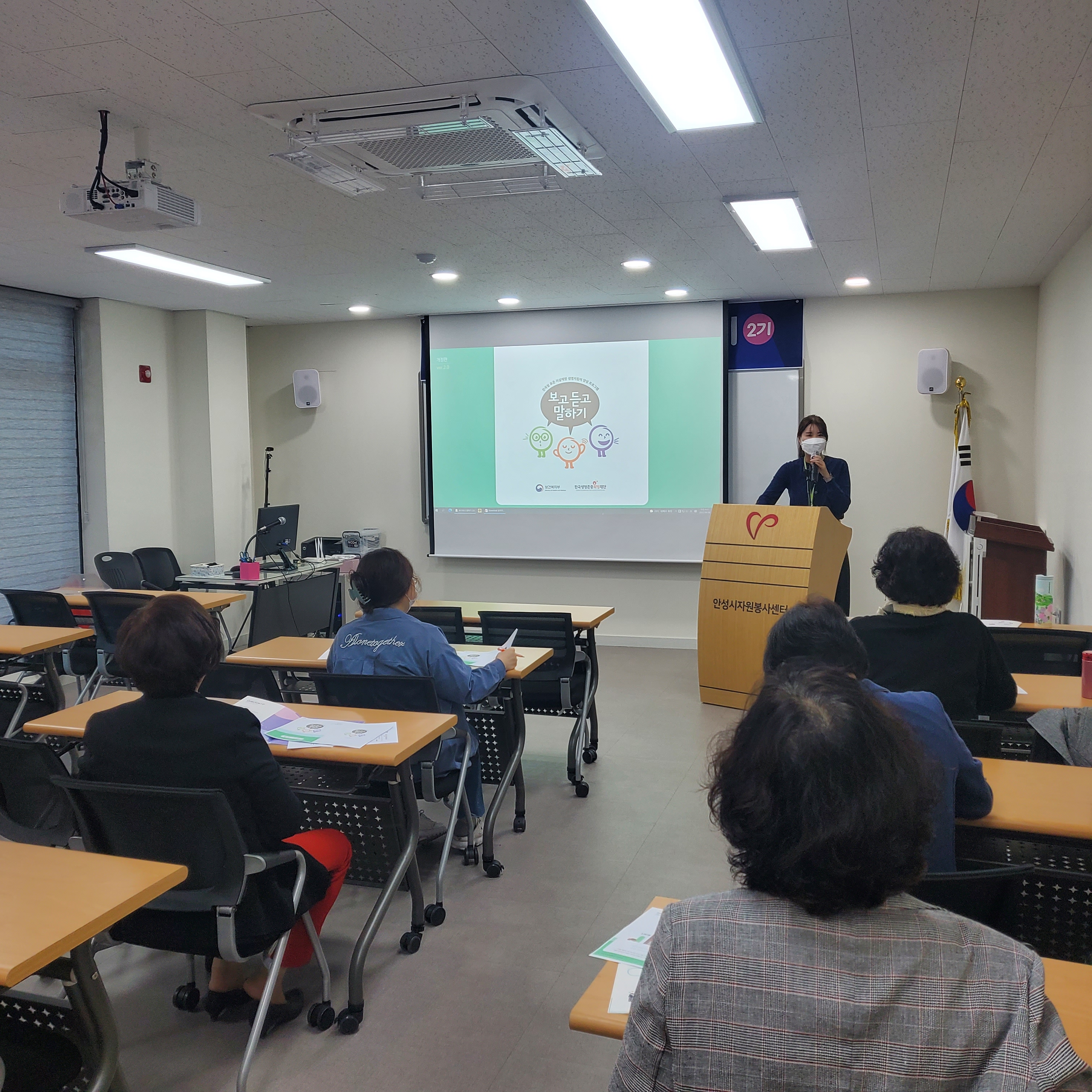 센터 강의실에서 재능기부봉사단 안자봉119봉사단은 정신건강복지센터[부설]자살예방센터에서 김지선 주임님을 통해 생명지킴이양성교육을 진행하였습니다.