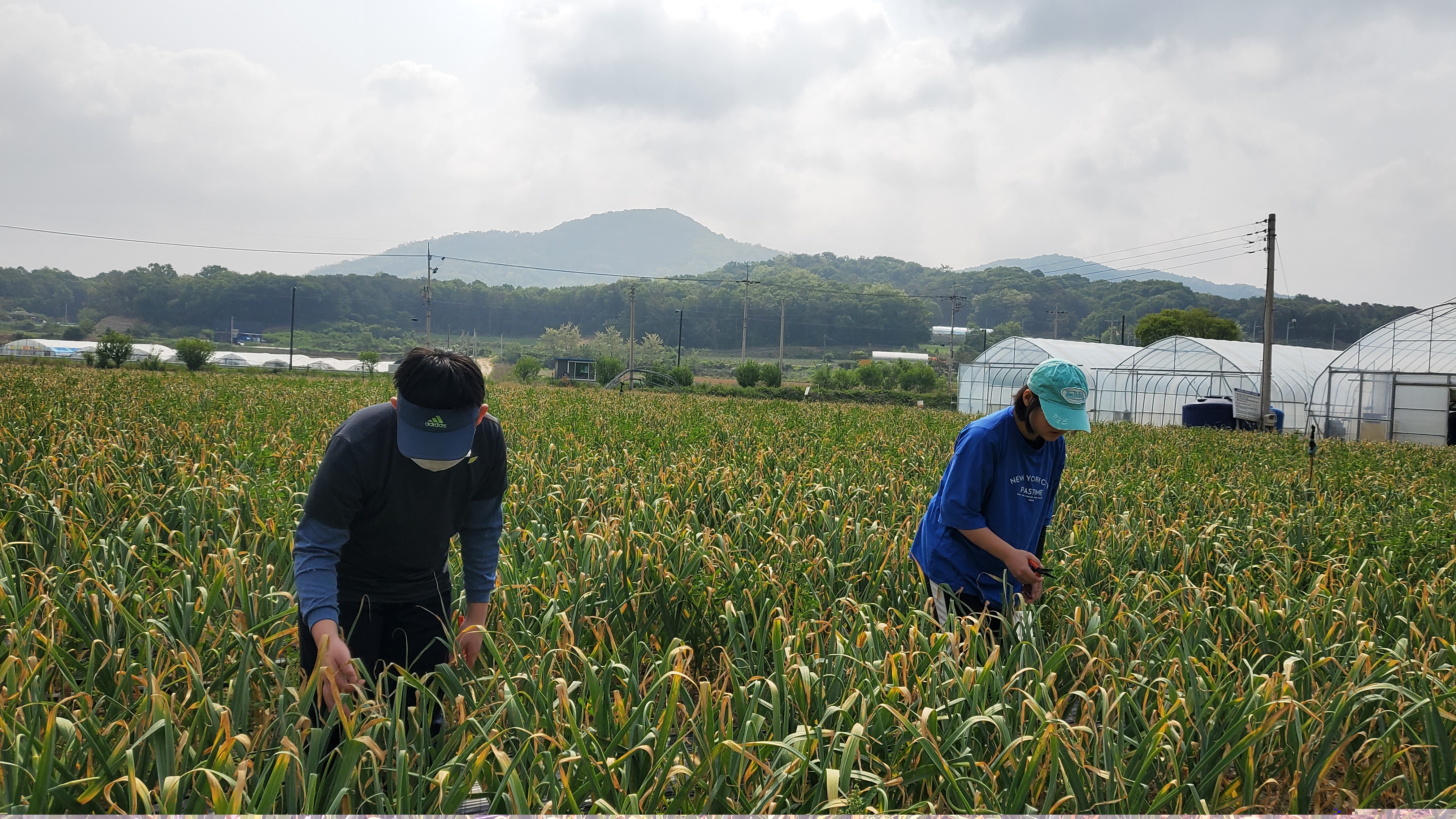 2022. 5. 21.(토) 제17기 가족봉사단은 일손이 부족한 농가를 대상으로 안성시농업기술센터의 협조를 받아 죽산면 용설리에 위치한 유기농 기법을 사용하는 마늘밭에서 마늘종 뽑기 농촌일손돕기를 진행하였습니다.