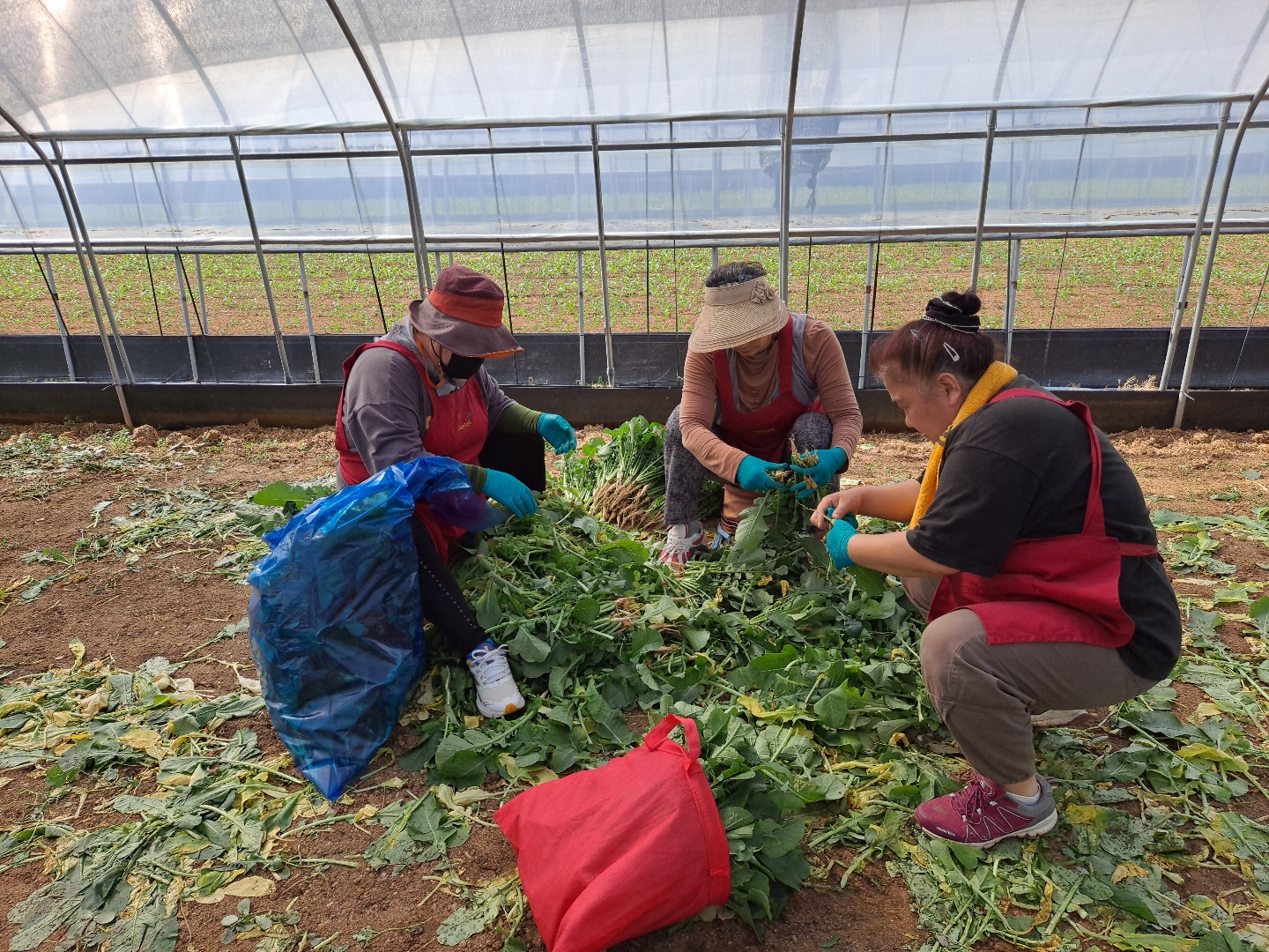 하우스 한 동의 열무를 뽑았습니다.