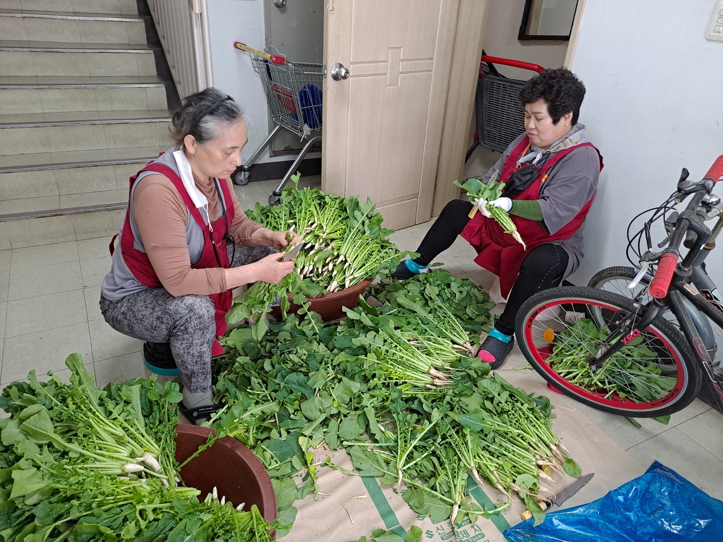 수확된 열무는 깨끗이 다듬고, 손질하여 취약계층 어르신들에게 배분되었습니다 ^^