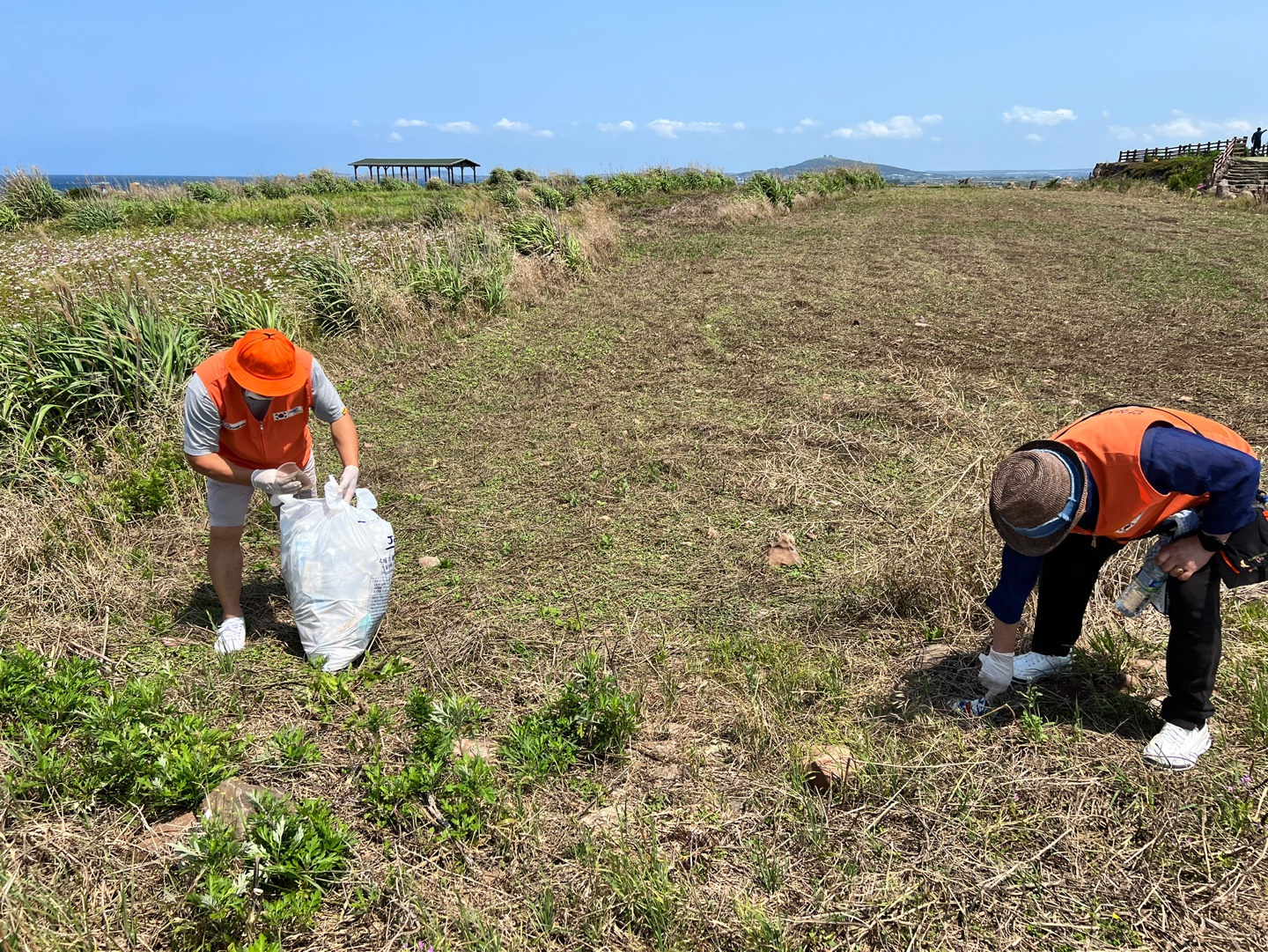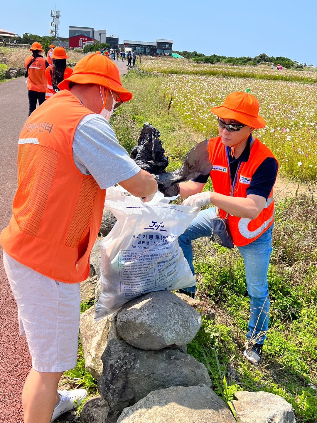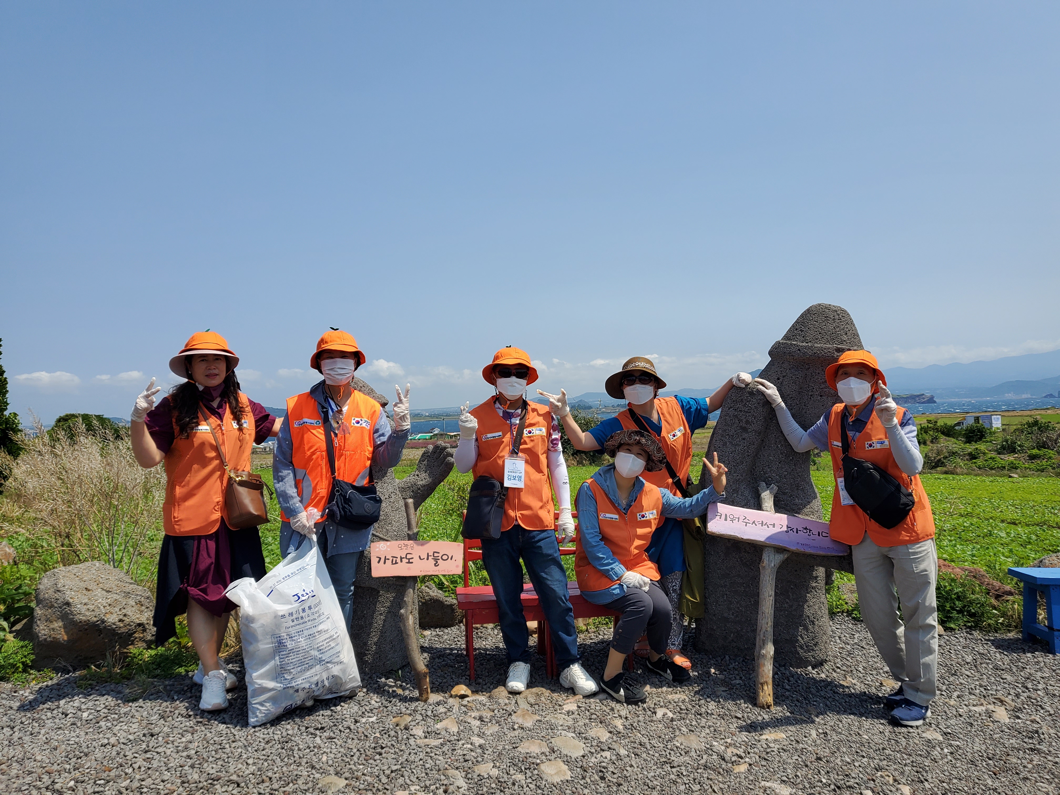 구석구석 어느 한 곳 빠짐없이 쓰레기를 주워 담아 깨끗한 가파도 길을 조성하였습니다. :)