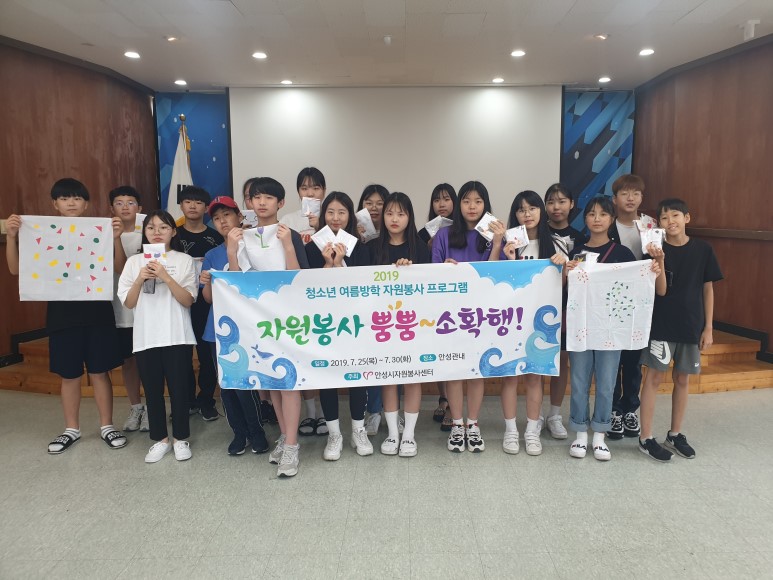 안성시자원봉사센터에서는 여름방학을 맞이한 청소년들을 대상으로 7월 25일(목) ~ 7월 30(화) 까지 청소년 자원봉사 여름방학 프로그램을 진행하였습니다.