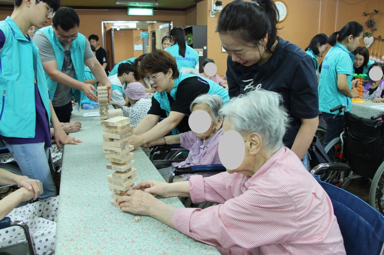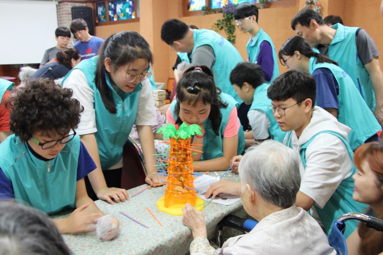 2019년 7월 6일(토) 제14기 안성시가족봉사단은 노인요양시설(구세군안성평화의마을)에 방문하였습니다.가족봉사단은 처음하는 시설봉사활동으로 어색했지만 다들 적극적으로 어르신들과 함께 보드게임을 즐기며 어르신들과 소통하는 시간을 가졌습니다.^^