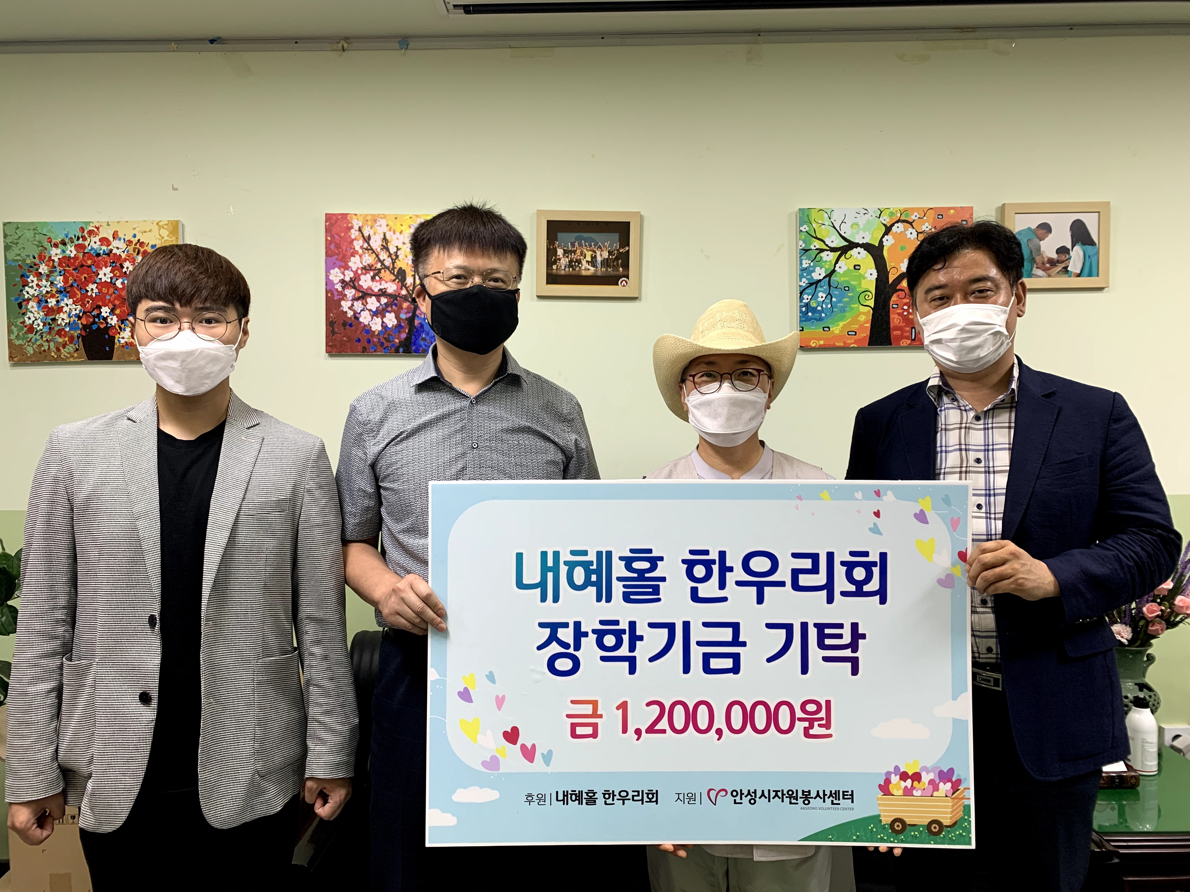 2020년 7월 23일(목) 내혜홀 한우리회는 안성시자원봉사센터(센터장 이진석)를 찾아 장학기금 120만원을 기탁하였습니다.