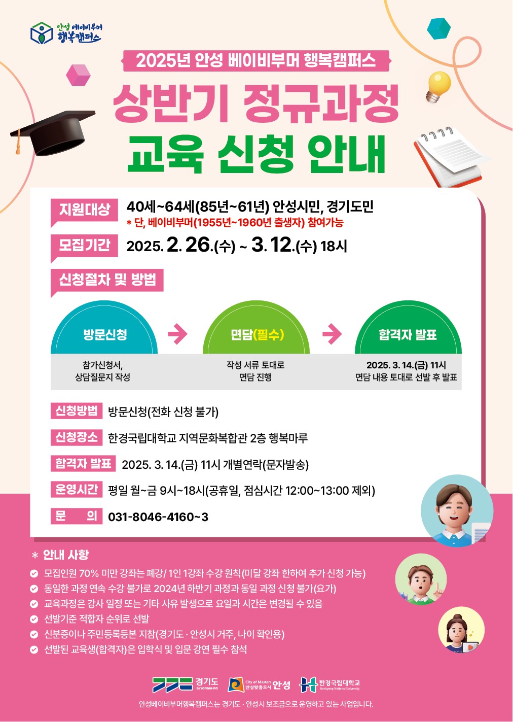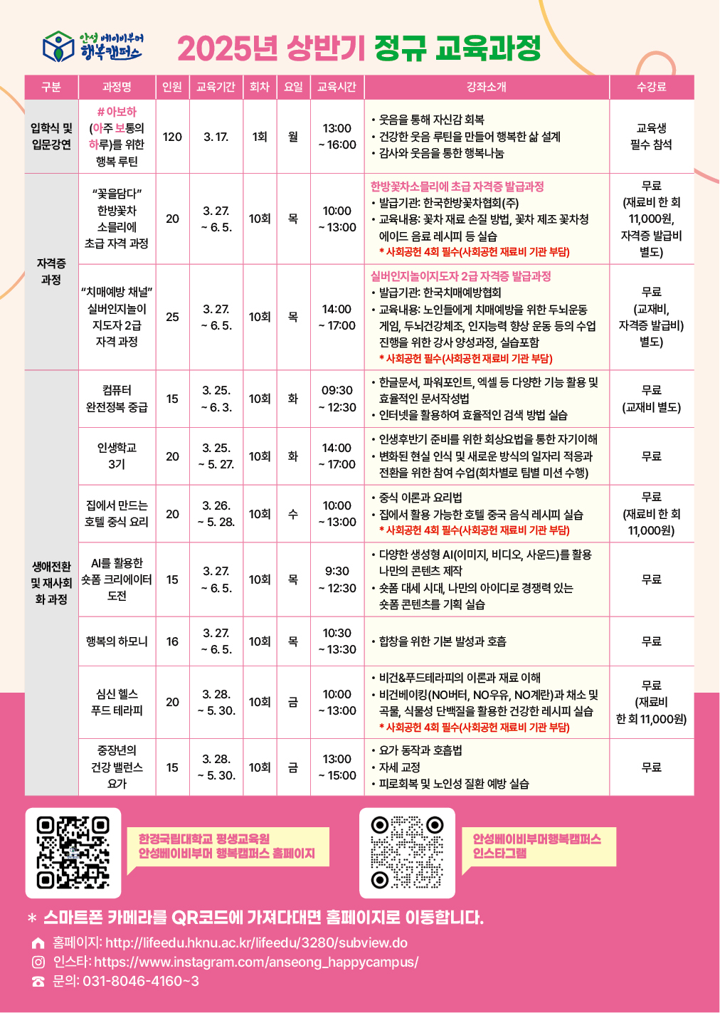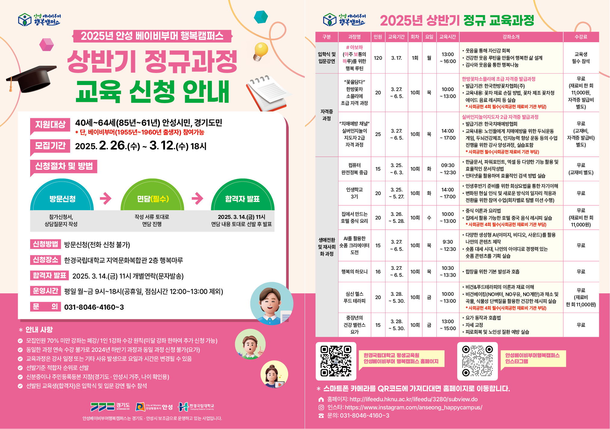2025년 안성 베이비부머 행복캠퍼스에서 상반기 정규과정 교육 신청자를 받고 있습니다.