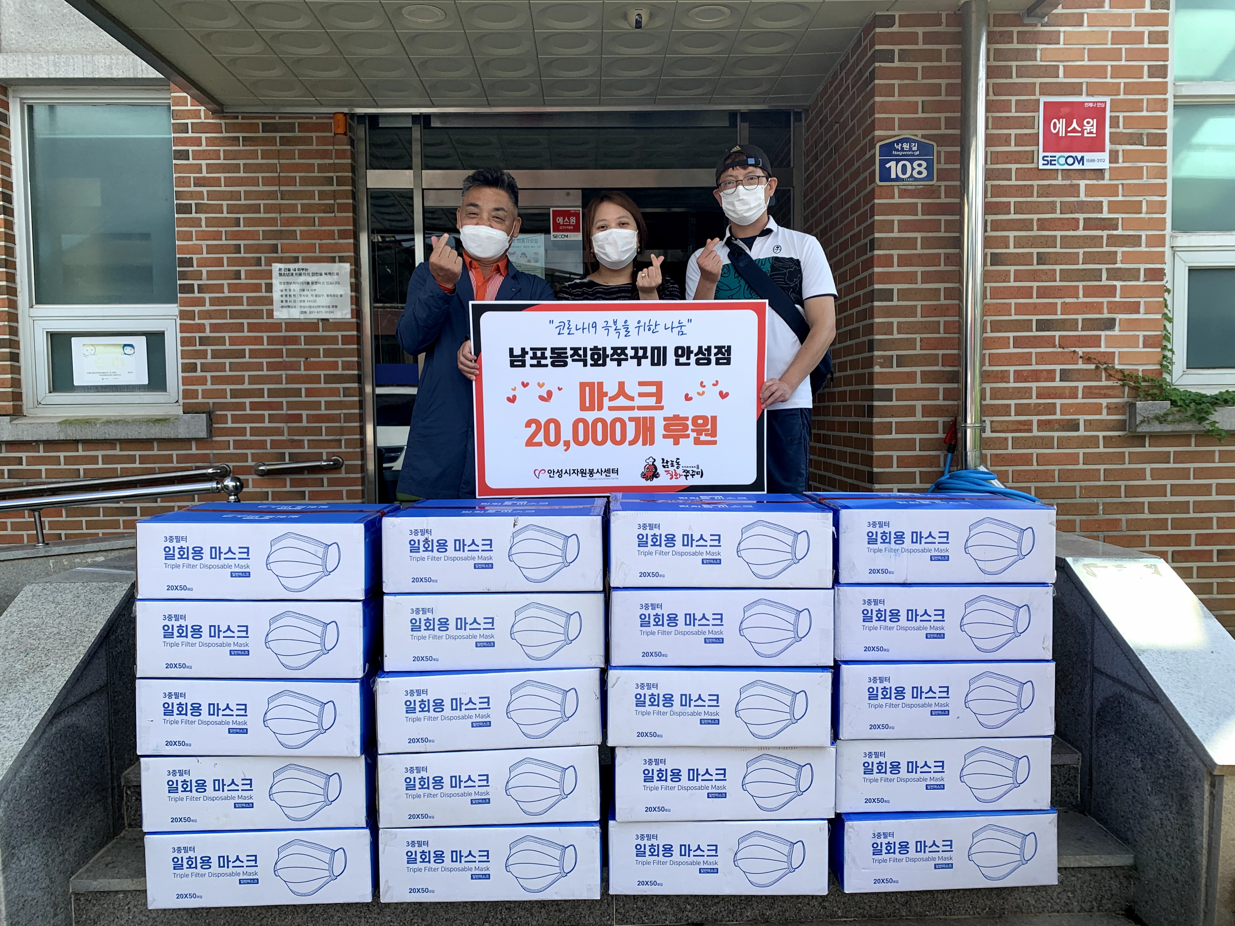 남포동직화쭈꾸미 마스크 20,000개를 안성시자원봉사센터(센터장 이진석)에 전달하였습니다.
