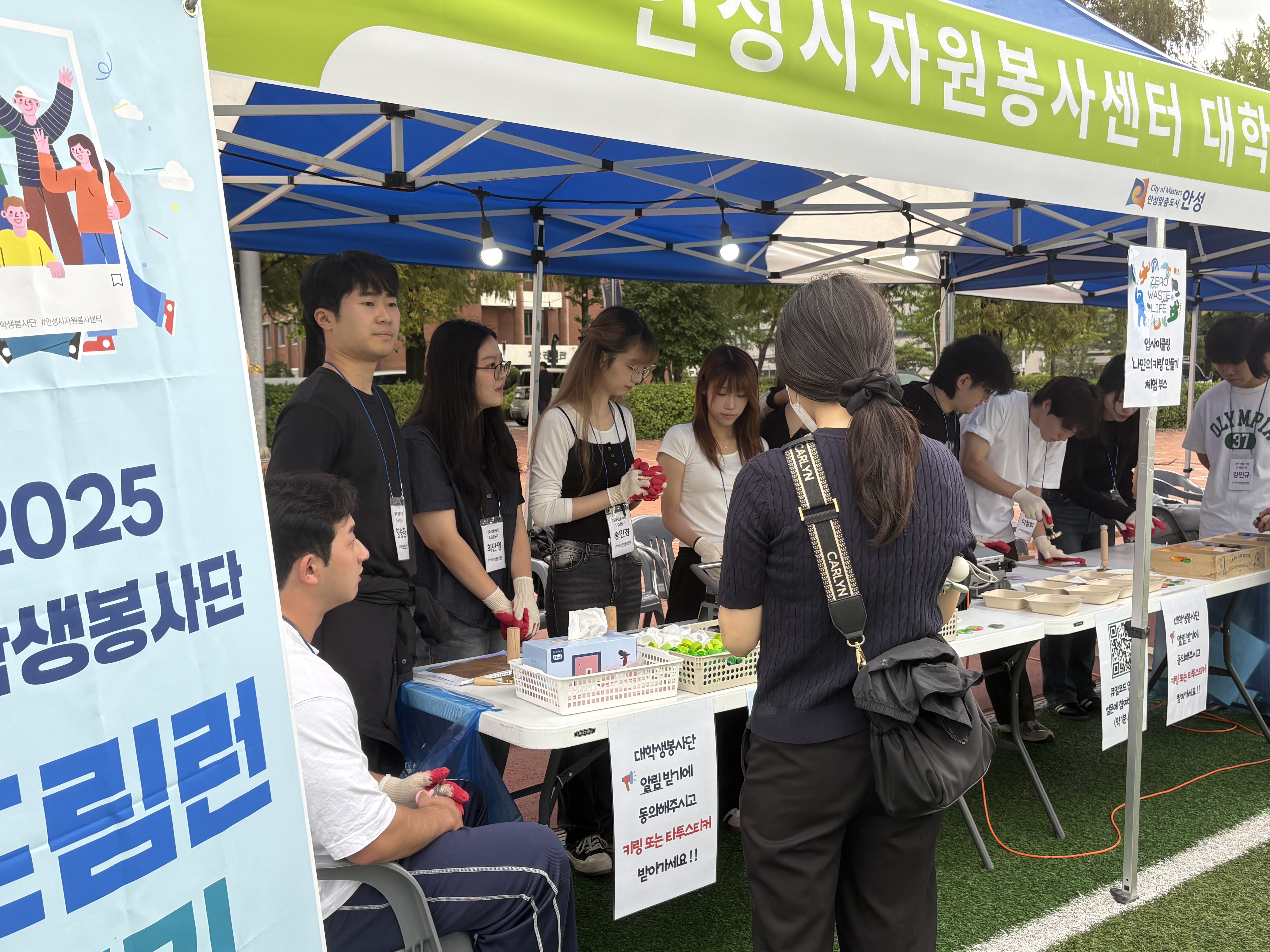 드림런 단원들은 병뚜껑 업사이클링 키링 만들기와 타투체험 부스를 운영하며 청년들과 즐겁게 소통했어요!